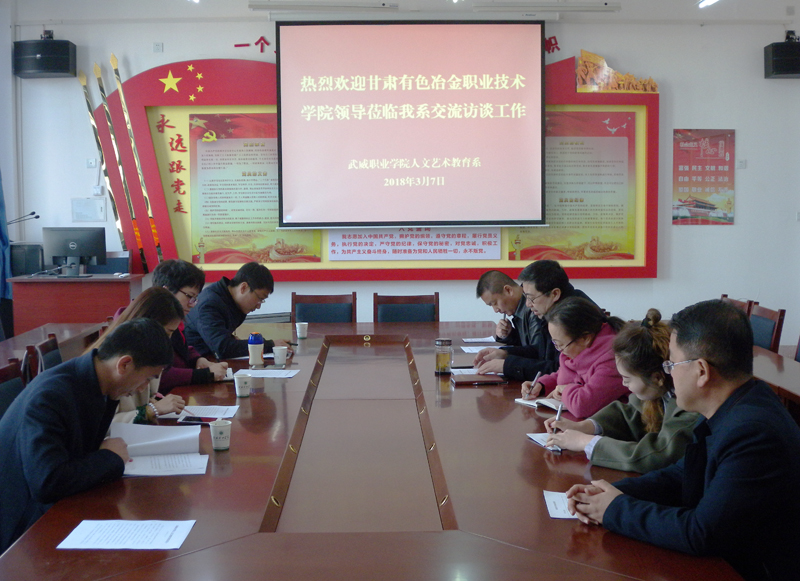 3月7日上午,甘肅有色冶金職業(yè)技術(shù)學(xué)院教育系負(fù)責(zé)人妙學(xué)春一行4人蒞臨我系進行交流學(xué)習(xí),系黨總支書記胡靜峰、各教研室主任參加了會議。