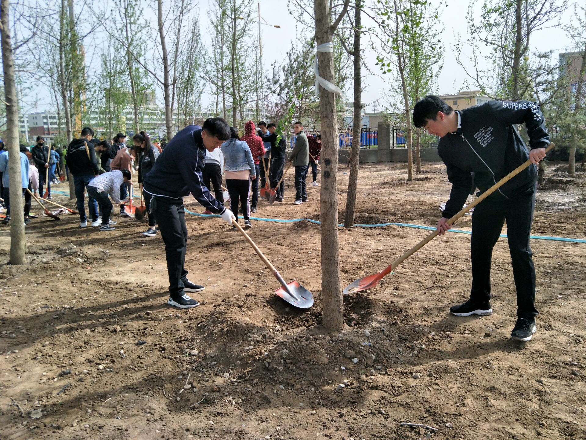 醫(yī)學技術學院黨總支在深入學習黨的十九大精神,貫徹全國兩會精神,積極響應習近平總書記提出的“青山綠水就是金山銀山”的生態(tài)建設號召,緊緊圍繞武威市委提出的“依法治綠、依規(guī)興綠、拆墻透綠、見縫插綠、應綠則綠、成倍增綠”的目標要求。4月13日下午,醫(yī)學技術與信息管理黨總支全體黨員干部參加了校園植樹勞動,充分發(fā)揮黨員的先鋒模范帶頭作用,為武威市創(chuàng)建全國文明城市和學院創(chuàng)建省級文明校園貢獻自己的力量。