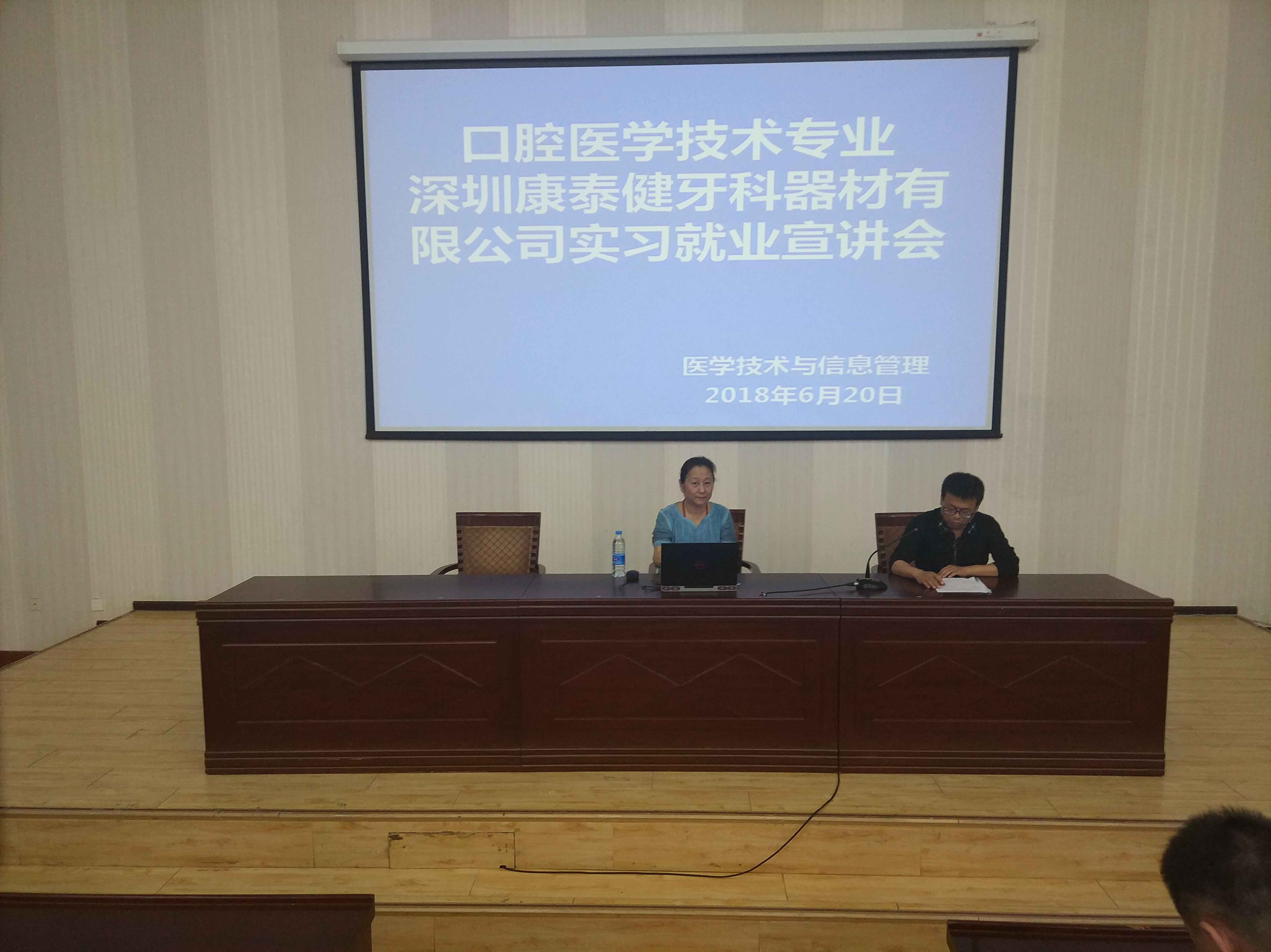 6月20日,醫(yī)學(xué)技術(shù)學(xué)院邀請(qǐng)深圳市康泰健牙科器材有限公司在正德廳召開企業(yè)實(shí)習(xí)就業(yè)宣講。參加宣講會(huì)的有康泰健牙科器材有限公司培訓(xùn)學(xué)校校長辛金紅、口腔技術(shù)專業(yè)教研室全體老師、在??谇会t(yī)學(xué)技術(shù)專業(yè)學(xué)生,宣講會(huì)由系副主任蔡濟(jì)眾主持。