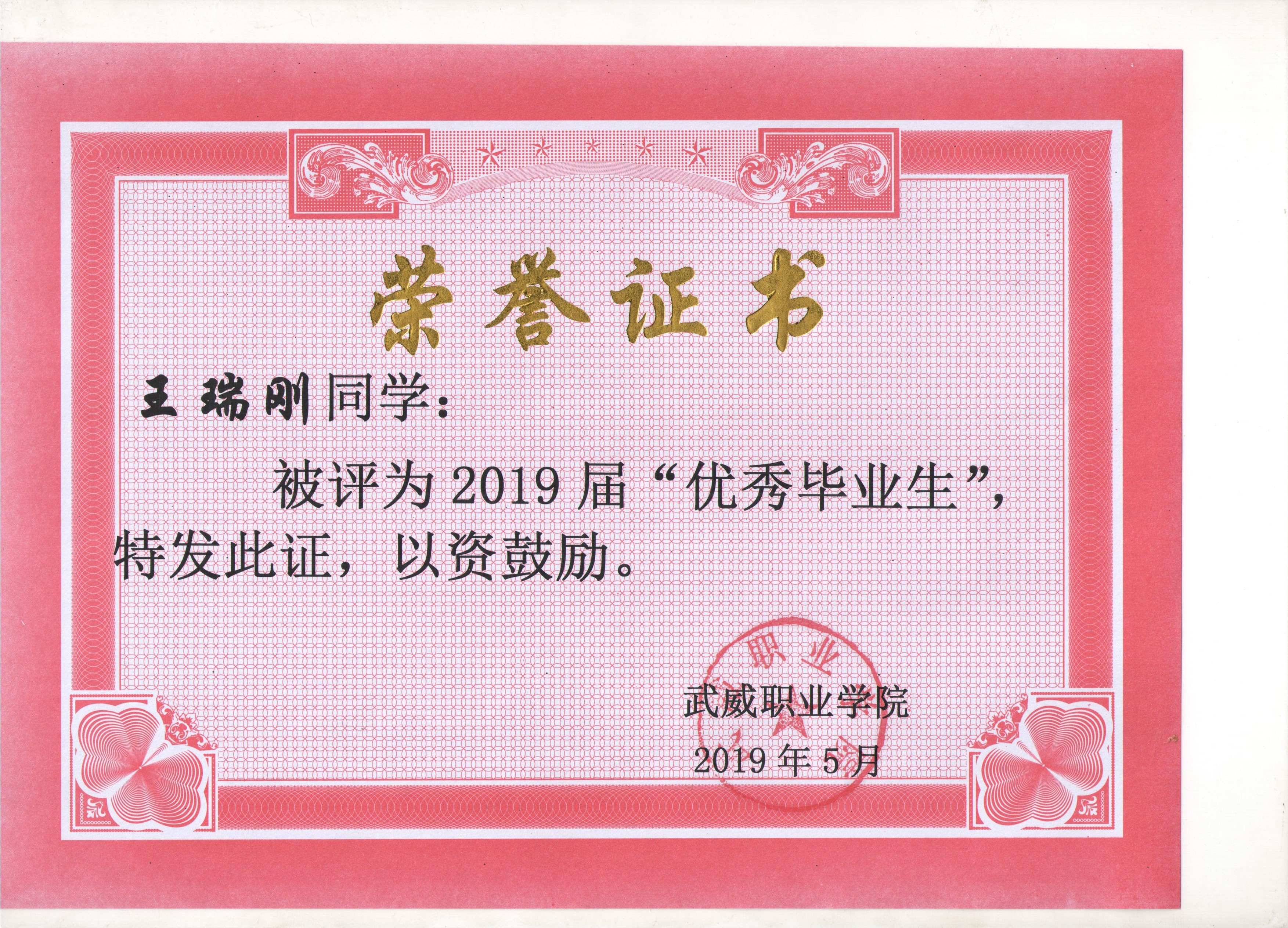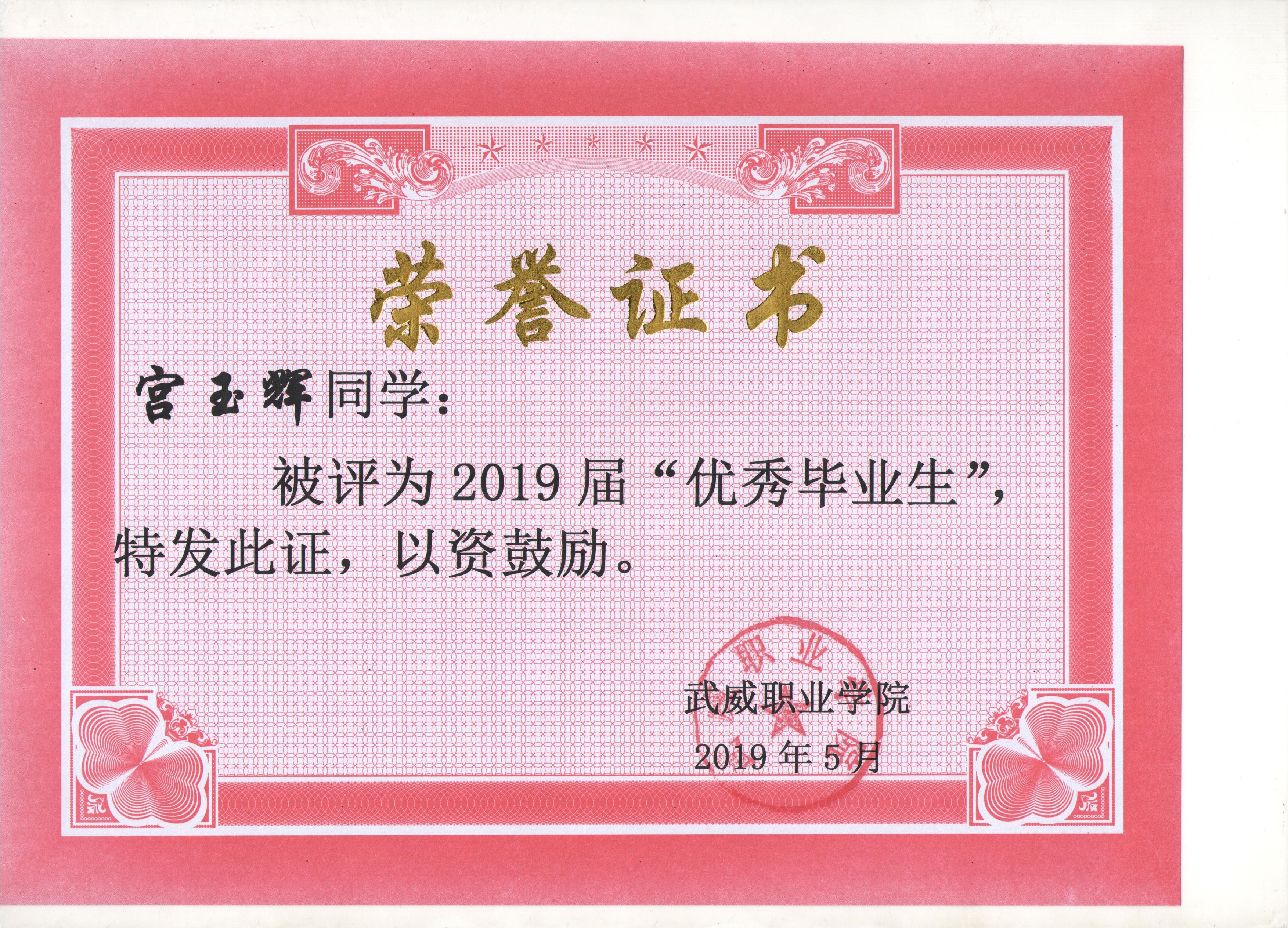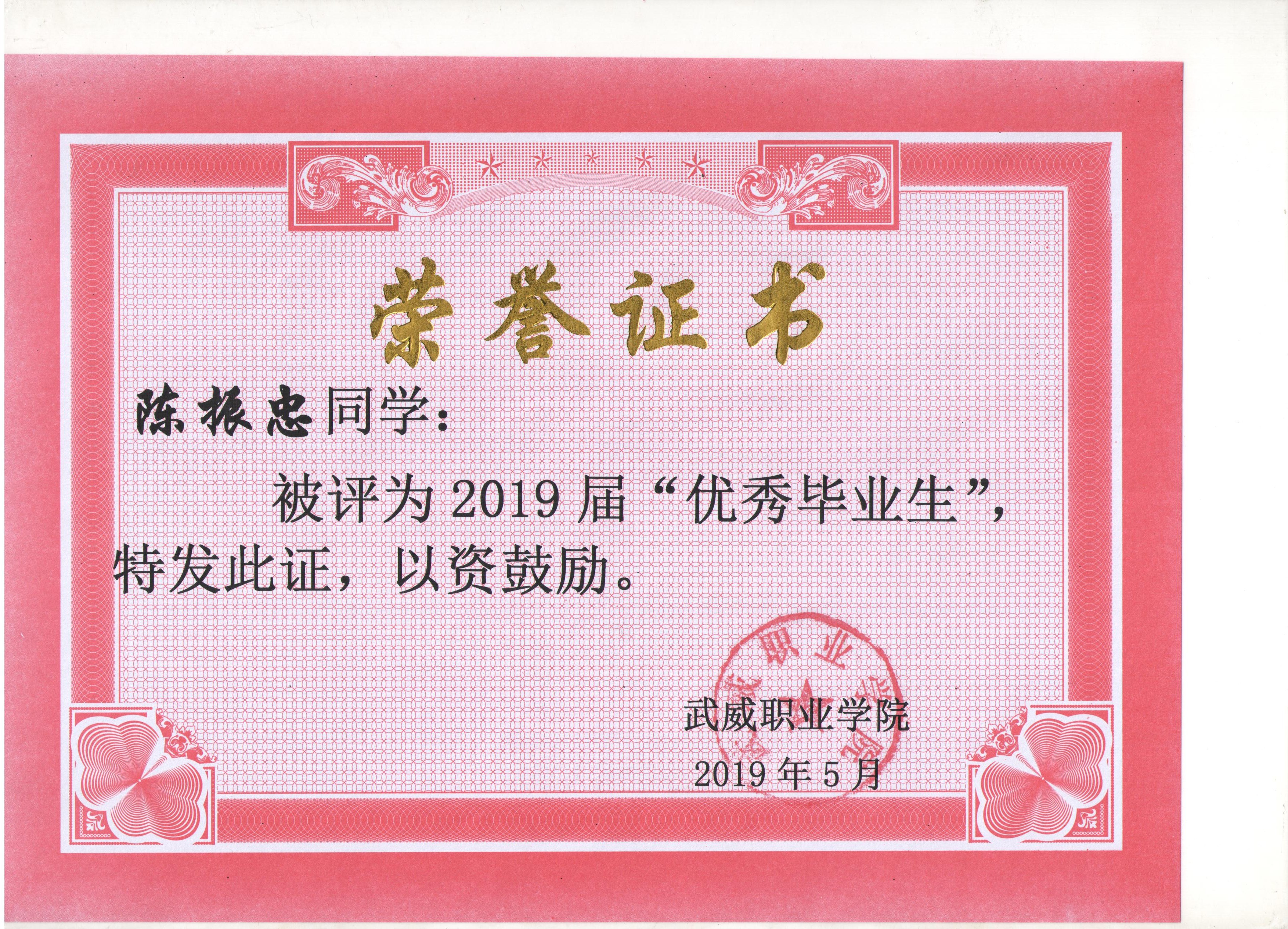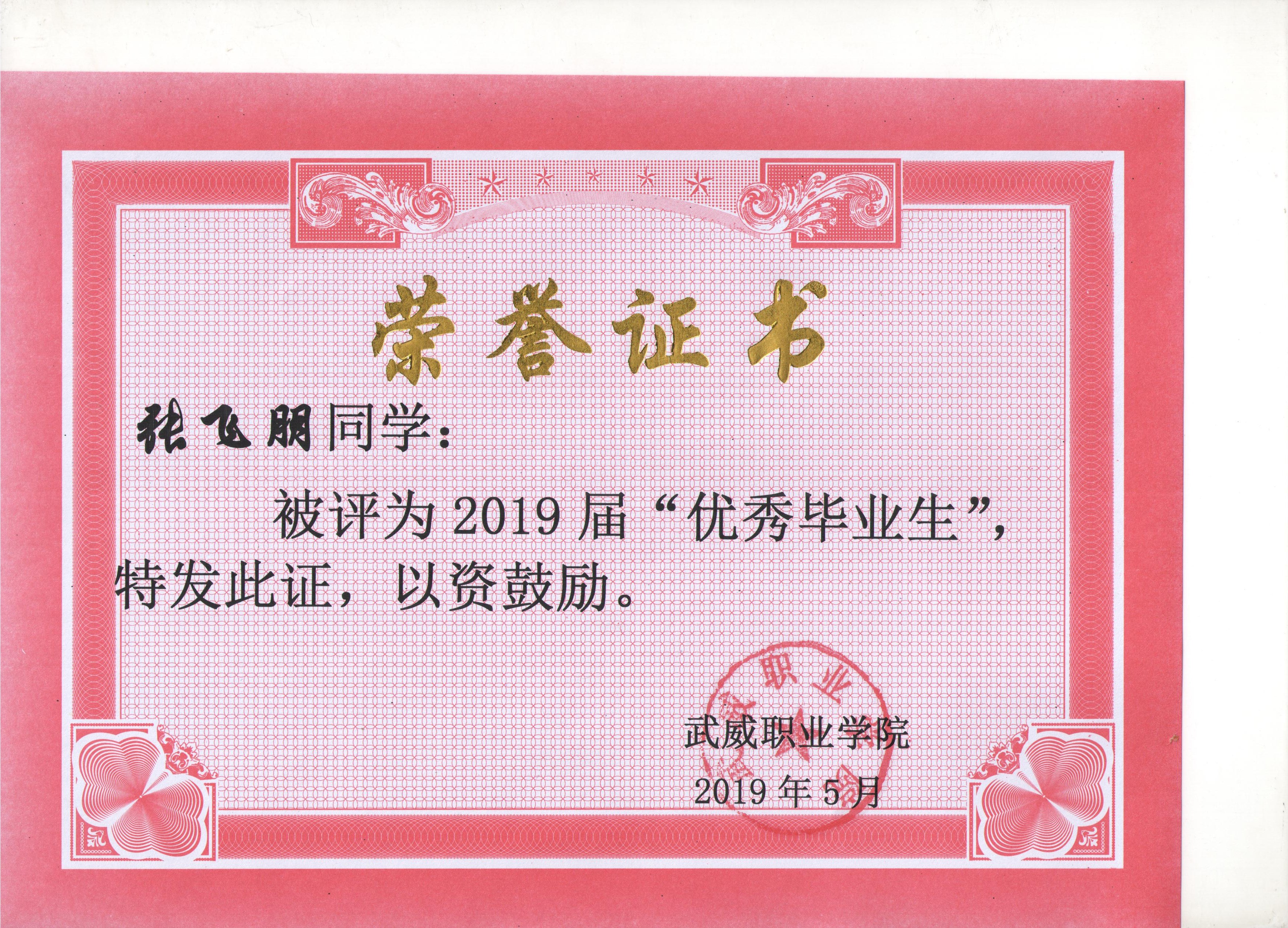 我系蔡少榮等19名同學(xué)榮獲武威職業(yè)學(xué)院2019屆“優(yōu)秀畢業(yè)生”榮譽(yù)稱(chēng)號(hào)