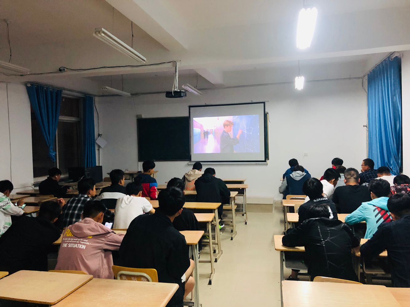 通過觀看教育影片《美麗心靈》教育同學(xué)們?cè)诿鎸?duì)生活、學(xué)習(xí)中的各種困難挫折時(shí),迎難而上,樂觀面對(duì)。