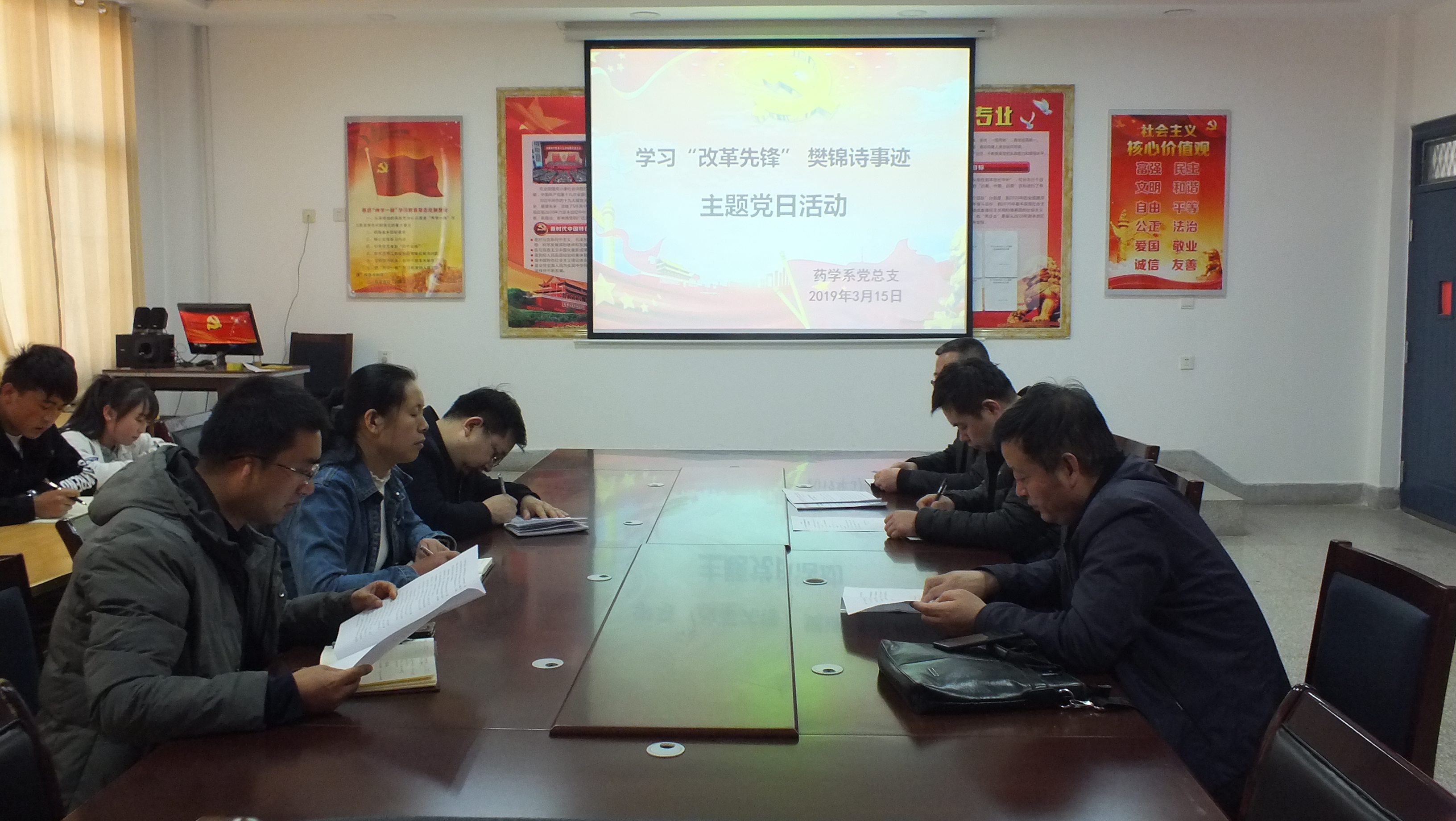 為響應榜樣號召,傳承時代精神,3月15日,藥學系黨總支組織全體黨員在明遠樓103黨員活動室,開展了學習“改革先鋒”樊錦詩先進事跡主題黨日活動。系主任魏潤明參加了此次活動,系黨總支副書記單光年主持活動。