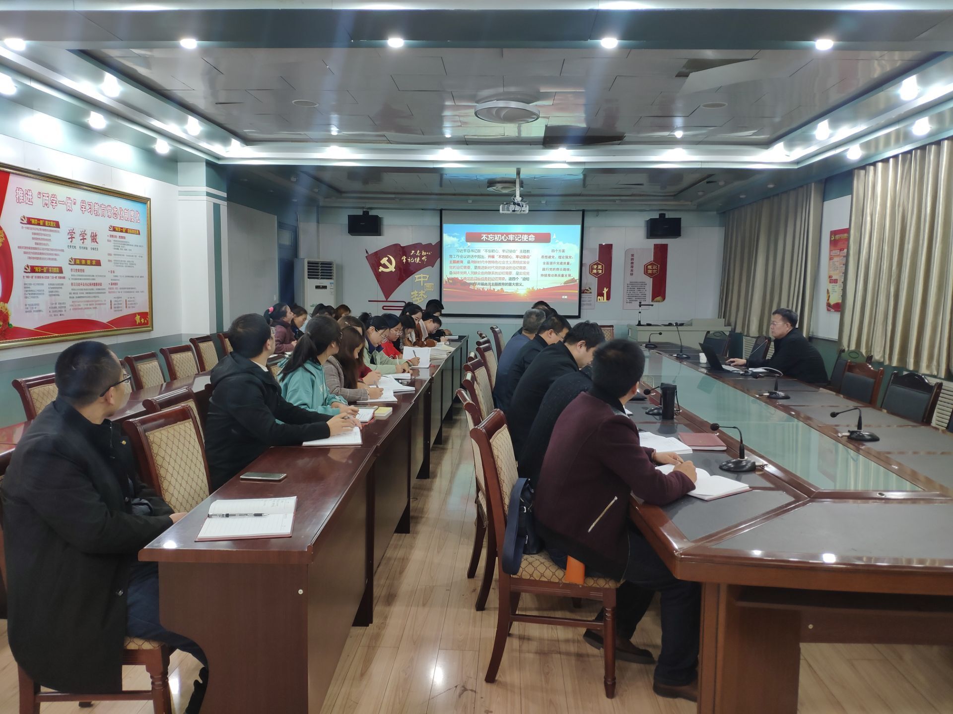 張開禮通過分析“不忘初心、牢記使命”主題教育的重大意義,指出“初心“、”使命”的豐富內(nèi)涵,身為中國共產(chǎn)黨員要堅守馬克思主義信仰、堅持黨領(lǐng)導(dǎo)一切工作、堅持全心全意為人民服務(wù)。張開禮指出,全體黨員要堅持讀原著、學(xué)原文、悟原理,在學(xué)深悟透習(xí)近平新時代中國特色社會主義思想上下功夫;以 “三會一課”、主題黨日等為重點,全面加強理論學(xué)習(xí),結(jié)合主題教育重點解決好理想信念、責(zé)任擔(dān)當(dāng)和執(zhí)行落實等問題上踐行初心和使命。