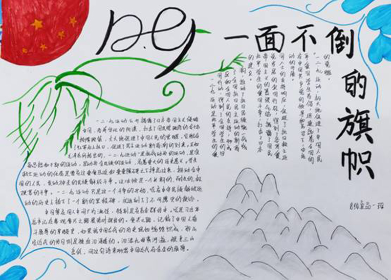 今年是“12.9”愛國運(yùn)動(dòng)84周年?,F(xiàn)代農(nóng)業(yè)技術(shù)系的十二個(gè)班級(jí)通過辦手抄報(bào)的形式開展紀(jì)念“12·9”運(yùn)動(dòng),旨在加強(qiáng)學(xué)生的愛國主義教育,弘揚(yáng)愛國主義精神,教育學(xué)生銘記歷史,勿忘國恥,增強(qiáng)民族自豪感。