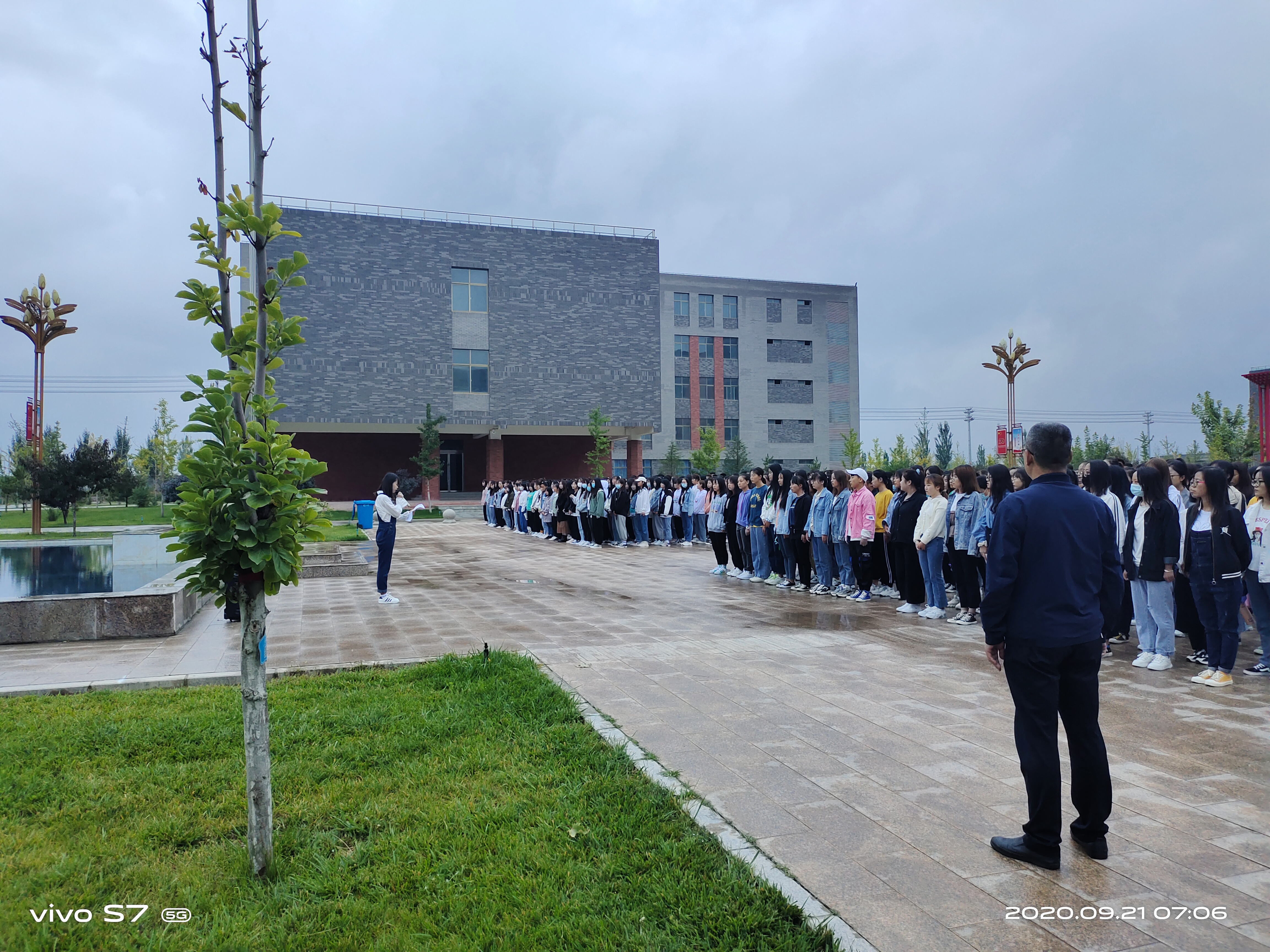 9月21日7點(diǎn)00分,藥學(xué)系在學(xué)院圖書館東廣場(chǎng)舉行升國旗儀式。系黨總支書記魏潤明、系副主任楊建美及藥學(xué)系700多名師生參加了此次升國旗儀式。