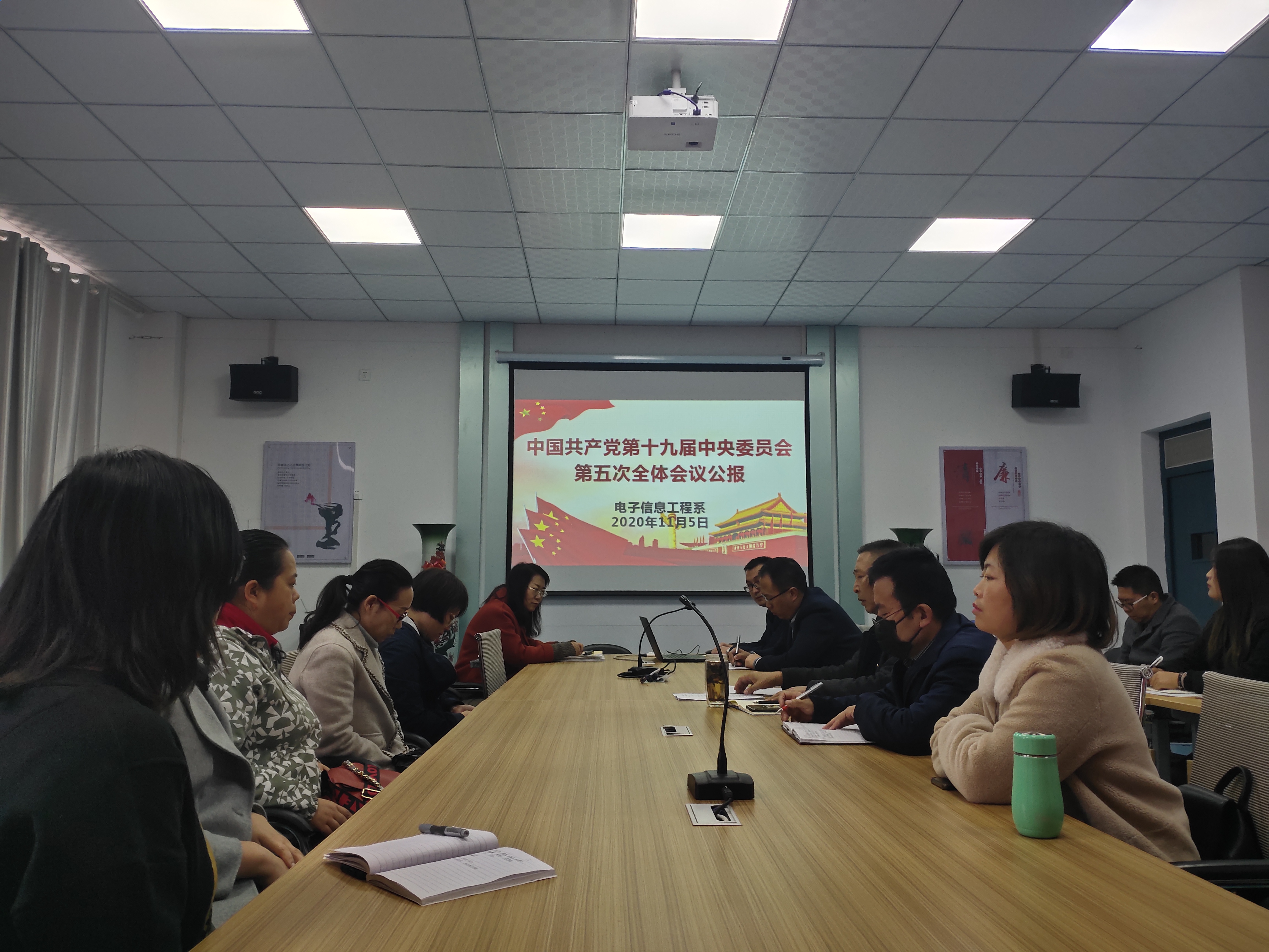 11月5日下午,電子信息工程系召開專題學(xué)習(xí)會議,深入學(xué)習(xí)領(lǐng)會黨的十九屆五中全會精神。會議由系黨總支書記袁青年主持,全體教師和學(xué)生黨員參加了學(xué)習(xí)。