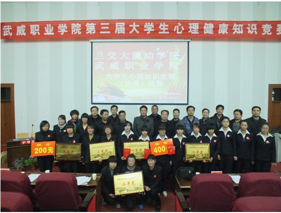 此次比賽歷時一個月,分為初賽和決賽兩部分。全院13個系和蘭交大能動學(xué)院代表隊參加了初賽的角逐,最終蘭交大能動學(xué)院、電子信息工程系、護理系、藥學(xué)系、外語系、農(nóng)經(jīng)系六支代表隊進入決賽。競賽分必答題、搶答題、風險題、觀眾互動四個環(huán)節(jié),內(nèi)容涉及心理理論知識、心理保健常識、心理科普知識等,融趣味性、教育性、普及性于一體。在比賽開始之前,各參賽隊一一向大家作了別出心裁的介紹,并喊出自己隊的參賽口號。比賽中,臺上選手們“八仙過海,各顯其能”,展現(xiàn)了他們雄厚的實力,隊員踴躍發(fā)言,積極搶答,臺下親友團搖旗吶喊,為選手加油,高潮迭起。現(xiàn)場始終洋溢著緊張、熱烈、和諧的氣氛。最終,護理系代表隊以他們精彩出色的表現(xiàn)奪得一等獎,能動學(xué)院代表隊、外語系代表隊獲得二等獎,藥學(xué)系、電信系、農(nóng)經(jīng)系代表隊獲得三等獎。