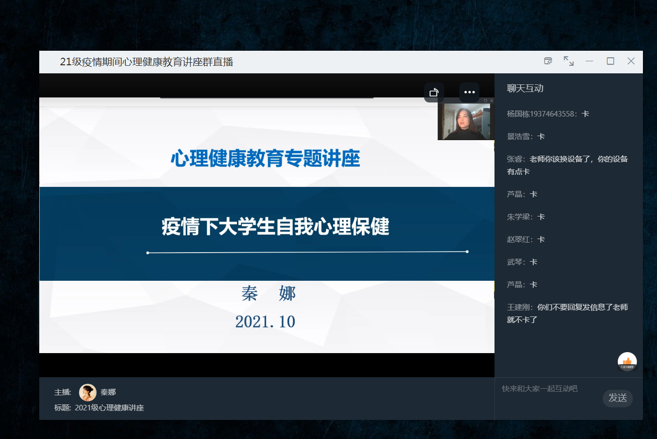 為提升我系學(xué)生對(duì)新冠肺炎的科學(xué)認(rèn)識(shí),做好心理健康知識(shí)宣傳普及,疏導(dǎo)學(xué)生因封閉管理帶來(lái)的負(fù)面情緒,營(yíng)造強(qiáng)信心、暖人心、聚生心的校園氛圍,在經(jīng)濟(jì)管理系黨總支的領(lǐng)導(dǎo)部署下,學(xué)生黨支部精心整理了新型冠狀病毒肺炎相關(guān)學(xué)習(xí)資料及新冠肺炎疫情下促進(jìn)大學(xué)生心理健康相關(guān)網(wǎng)絡(luò)課程,邀請(qǐng)學(xué)院心里健康咨詢師秦娜老師組織開展疫情防控線上學(xué)習(xí)活動(dòng)。此次學(xué)習(xí)活動(dòng)面向全系2021級(jí)全體同學(xué),旨在幫助學(xué)生更好地了解有關(guān)新冠肺炎防護(hù)的知識(shí),緩解同學(xué)們?cè)诜忾]管理期間產(chǎn)生的煩躁不安等情緒,正確應(yīng)對(duì)疫情,有效保護(hù)自身安全。