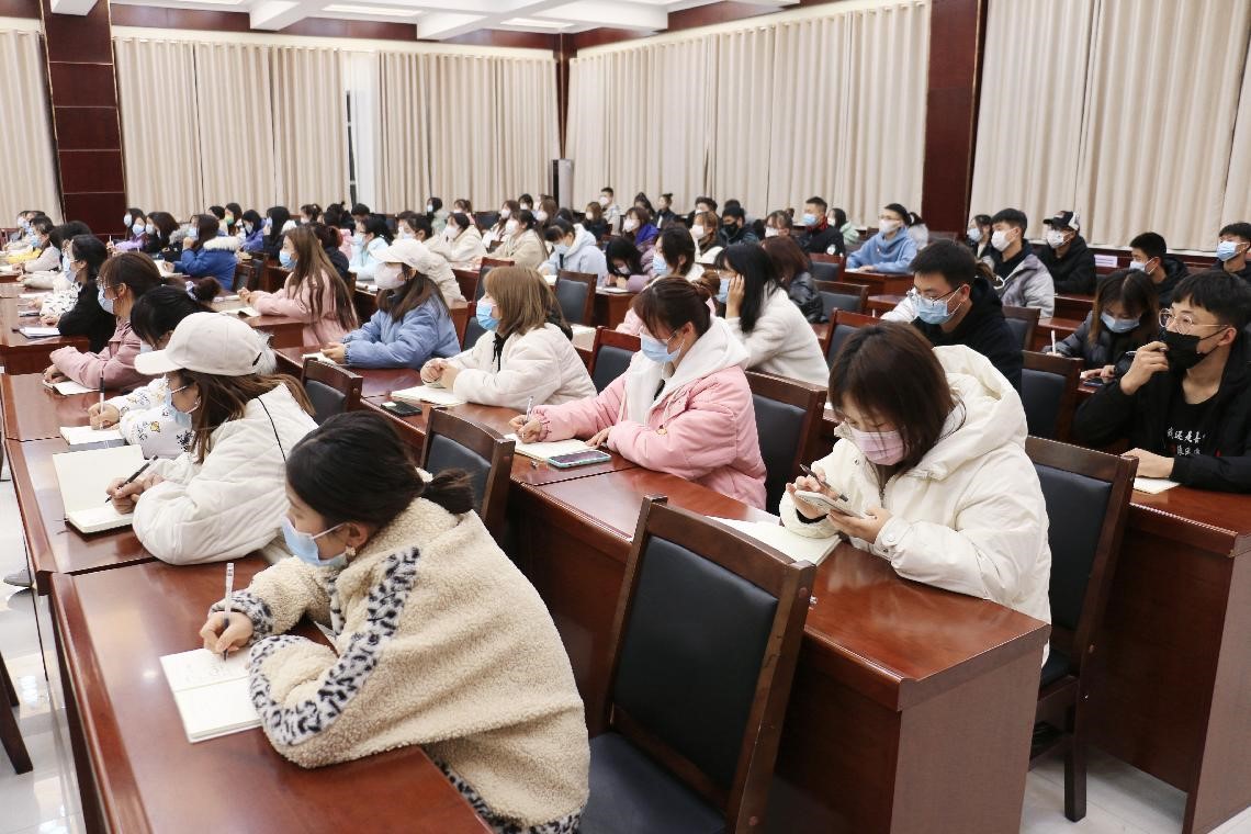 最后,金主任對同學(xué)們開展就業(yè)指導(dǎo)。期間,金主任以幽默風(fēng)趣的語言,結(jié)合自身經(jīng)歷,貼合實際講解,引導(dǎo)同學(xué)們樹立正確的就業(yè)觀和擇業(yè)觀,以積極的心態(tài)面對嚴峻的就業(yè)形勢。