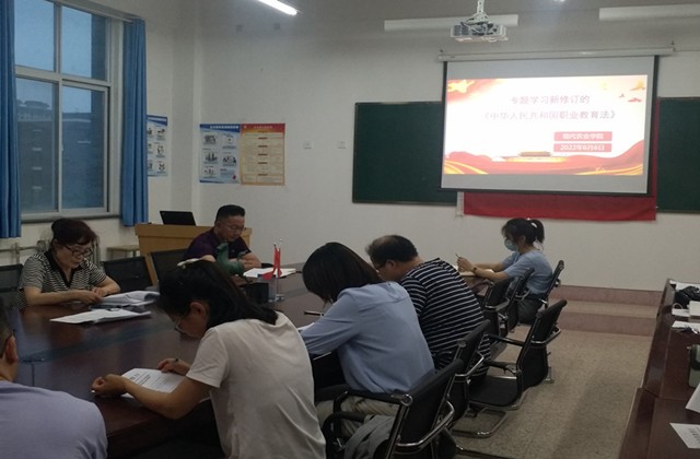 6月6日晚,現(xiàn)代農業(yè)學院(鄉(xiāng)村振興學院)組織召開專題會議,學習新修訂的《中華人民共和國職業(yè)教育法》(以下簡稱《職業(yè)教育法》)。會議由學院黨總支書記晏素珍主持,院長金玉龍及全體教師參加了此次學習。