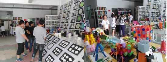 隨后7月4日在勵勤樓又舉辦了15級電腦藝術(shù)設(shè)計、圖形圖像處理、室內(nèi)設(shè)計、動漫設(shè)計四個設(shè)計專業(yè)學(xué)生作品展,有董有國老師指導(dǎo)的《設(shè)計素描》、《設(shè)計色彩》課程作品200張,何曉琴老師指導(dǎo)的《圖形創(chuàng)意》課程作品73件、《設(shè)計構(gòu)成》課程作品420張、劉利強(qiáng)老師指導(dǎo)的《設(shè)計作品》380張,馮燕老師指導(dǎo)的《立體構(gòu)成》75件,張夏溪老師指導(dǎo)的《立體構(gòu)成》作品66件。共計作品1159件?!对O(shè)計素描》、《設(shè)計色彩》、《構(gòu)成》課程是設(shè)計專業(yè)的基礎(chǔ)課程。《設(shè)計色彩》培養(yǎng)學(xué)生對色彩的感知,學(xué)會搭配色彩,掌握色彩的不同情感,對于學(xué)設(shè)計的同學(xué)來說色彩關(guān)系到作品的優(yōu)秀程度?!对O(shè)計構(gòu)成》包含平面構(gòu)成、色彩構(gòu)成、立體構(gòu)成三大類。構(gòu)成的基礎(chǔ)性在于它的普遍性,“構(gòu)成”的教育理念不僅揭示了藝術(shù)設(shè)計元素內(nèi)在的規(guī)律,還有助于學(xué)生對造型設(shè)計藝術(shù)規(guī)律和藝術(shù)設(shè)計技能的掌握。