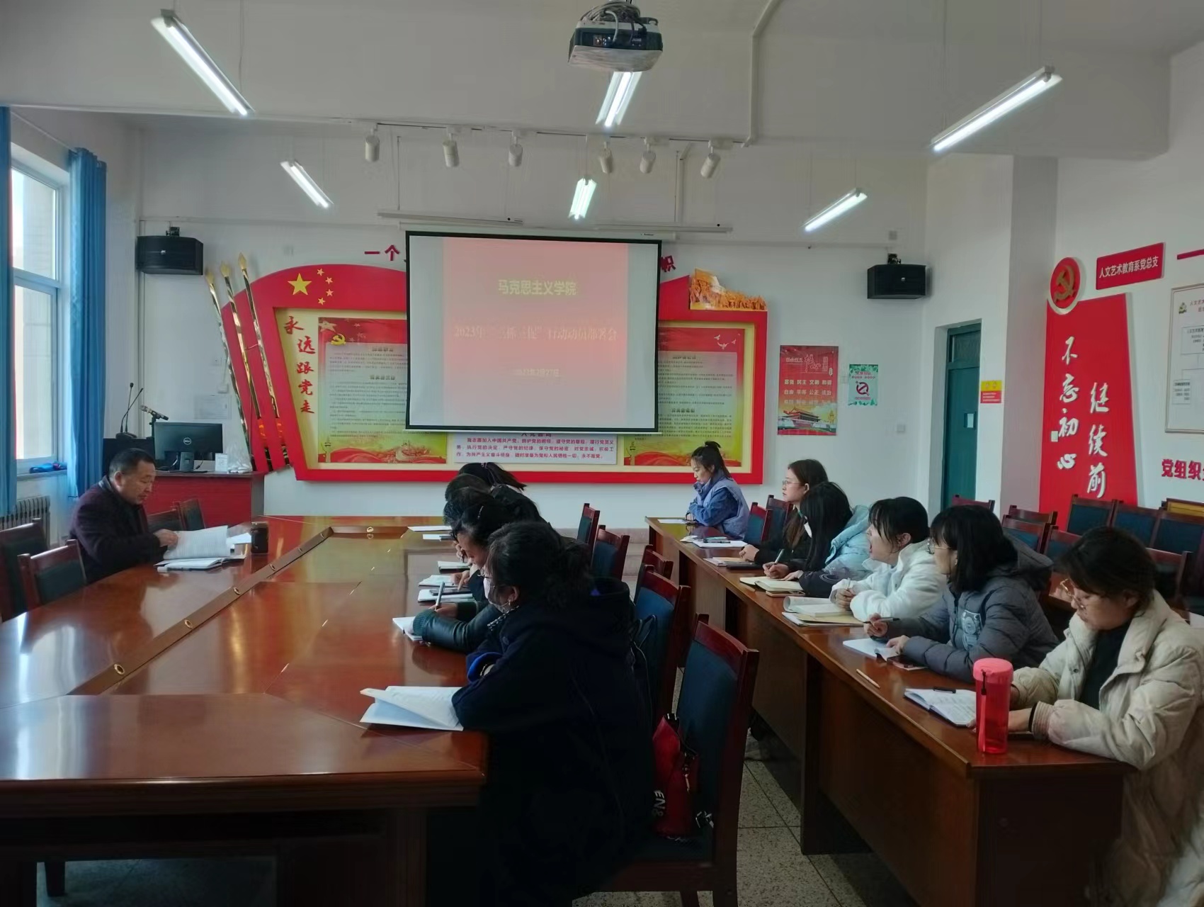 會議傳達學習了《武威職業(yè)學院“抓學習促提升抓執(zhí)行促落實抓效能促發(fā)展”行動實施方案》文件精神,全面梳理了馬克思主義學院在“三抓三促”行動中存在的具體問題,并結(jié)合學院實際,對2023年重點工作進行了安排部署。