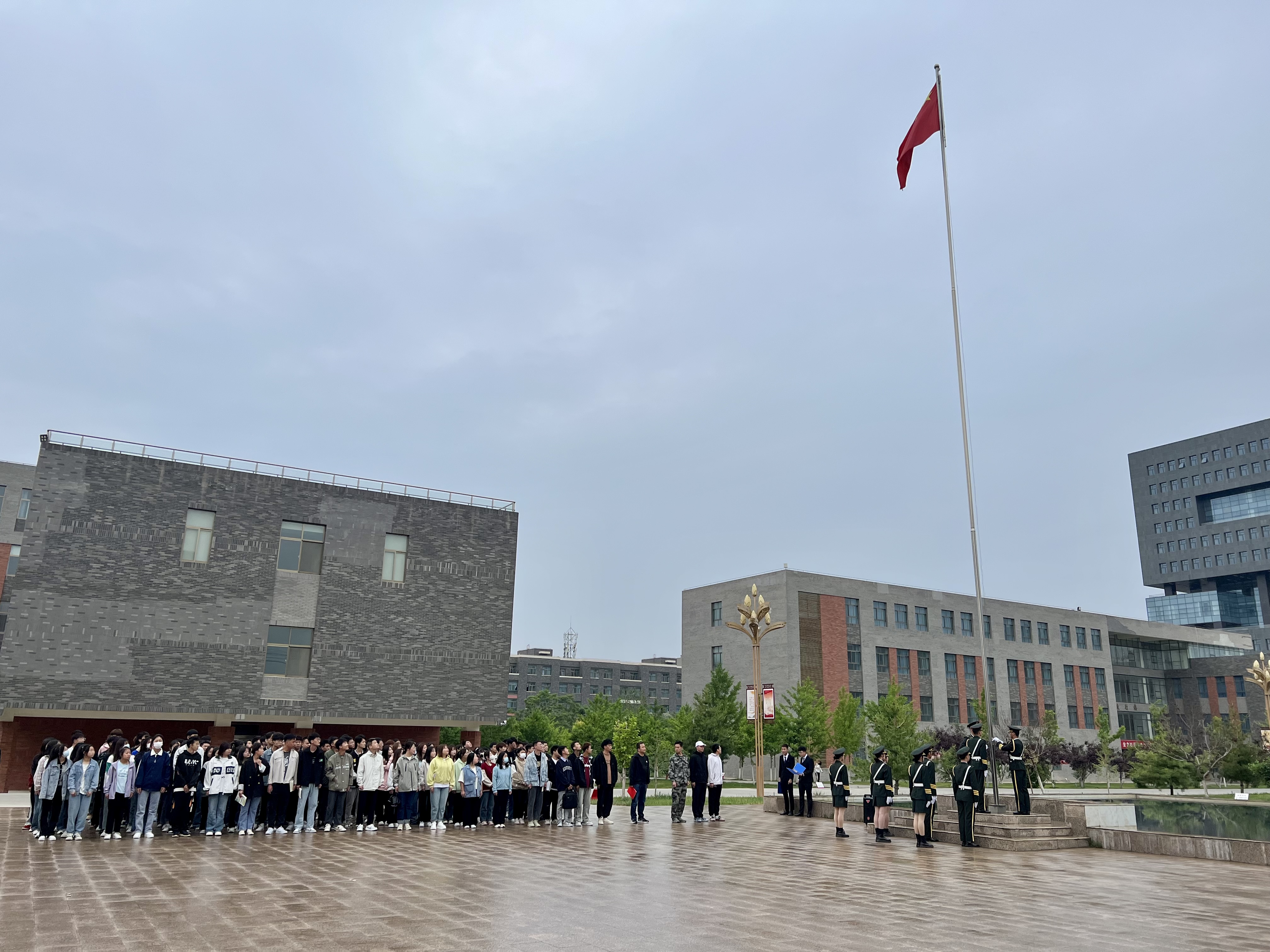 為進(jìn)一步加強(qiáng)愛國(guó)主義教育和文明校園建設(shè),增強(qiáng)學(xué)生集體榮譽(yù)感和社會(huì)責(zé)任感,促使新時(shí)代大學(xué)生切實(shí)肩負(fù)起時(shí)代賦予的責(zé)任和使命,鼓勵(lì)學(xué)生將愛黨愛國(guó)的精神內(nèi)化于心,外化于行,2023年5月29日早上7點(diǎn)20分,現(xiàn)代農(nóng)業(yè)學(xué)院全體師生在圖書館升旗廣場(chǎng)舉行升旗儀式。