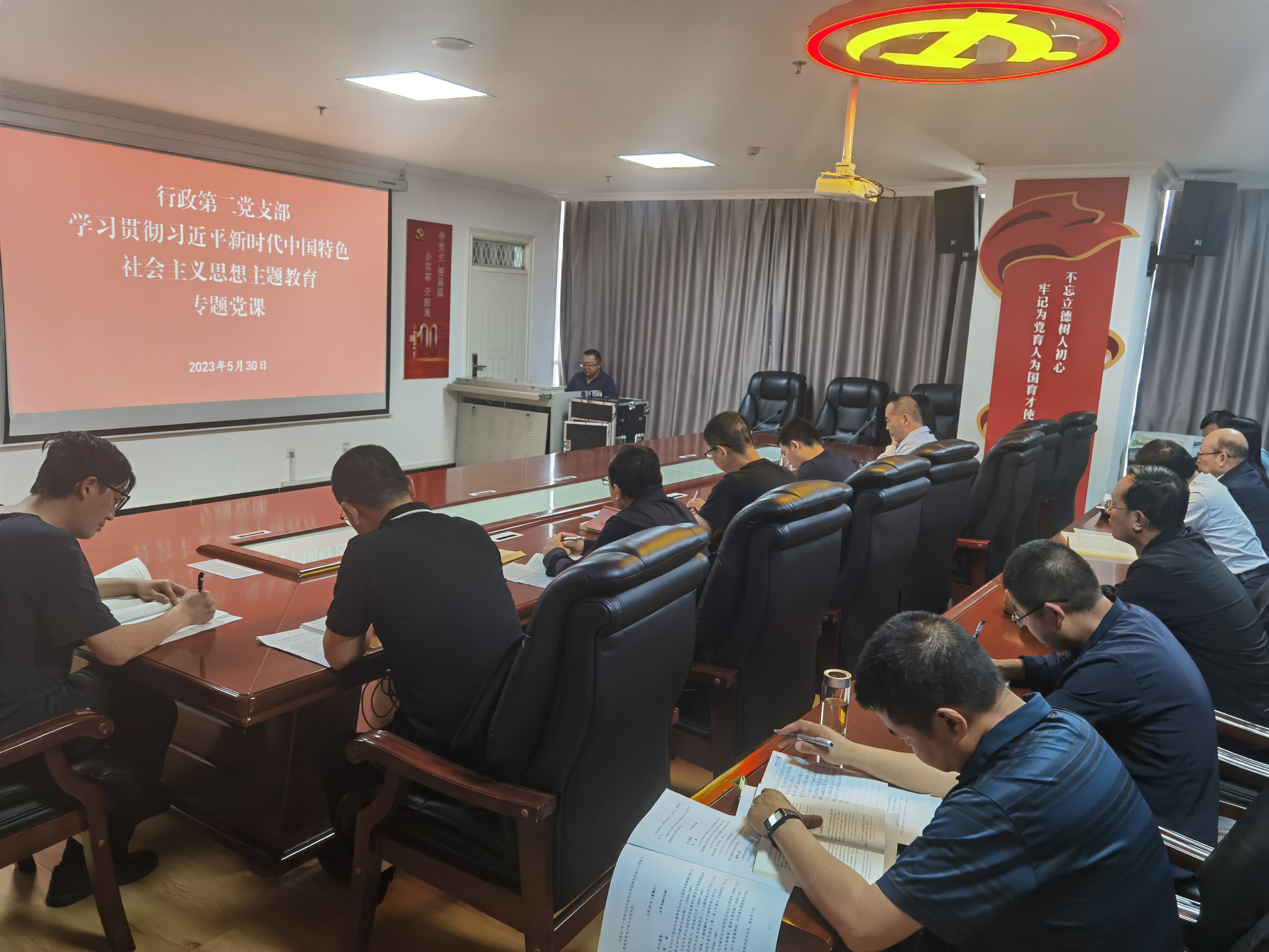 5月30日下午,行政第二黨支部書記魏全民在810會議室以《學(xué)習(xí)新思想 奮進(jìn)新征程 建功新時代》為題,并結(jié)合個人學(xué)思踐悟和教育教學(xué)工作實際,講授學(xué)習(xí)貫徹習(xí)近平新時代中國特色社會主義思想主題教育專題黨課,行政第二黨支部全體黨員參加。