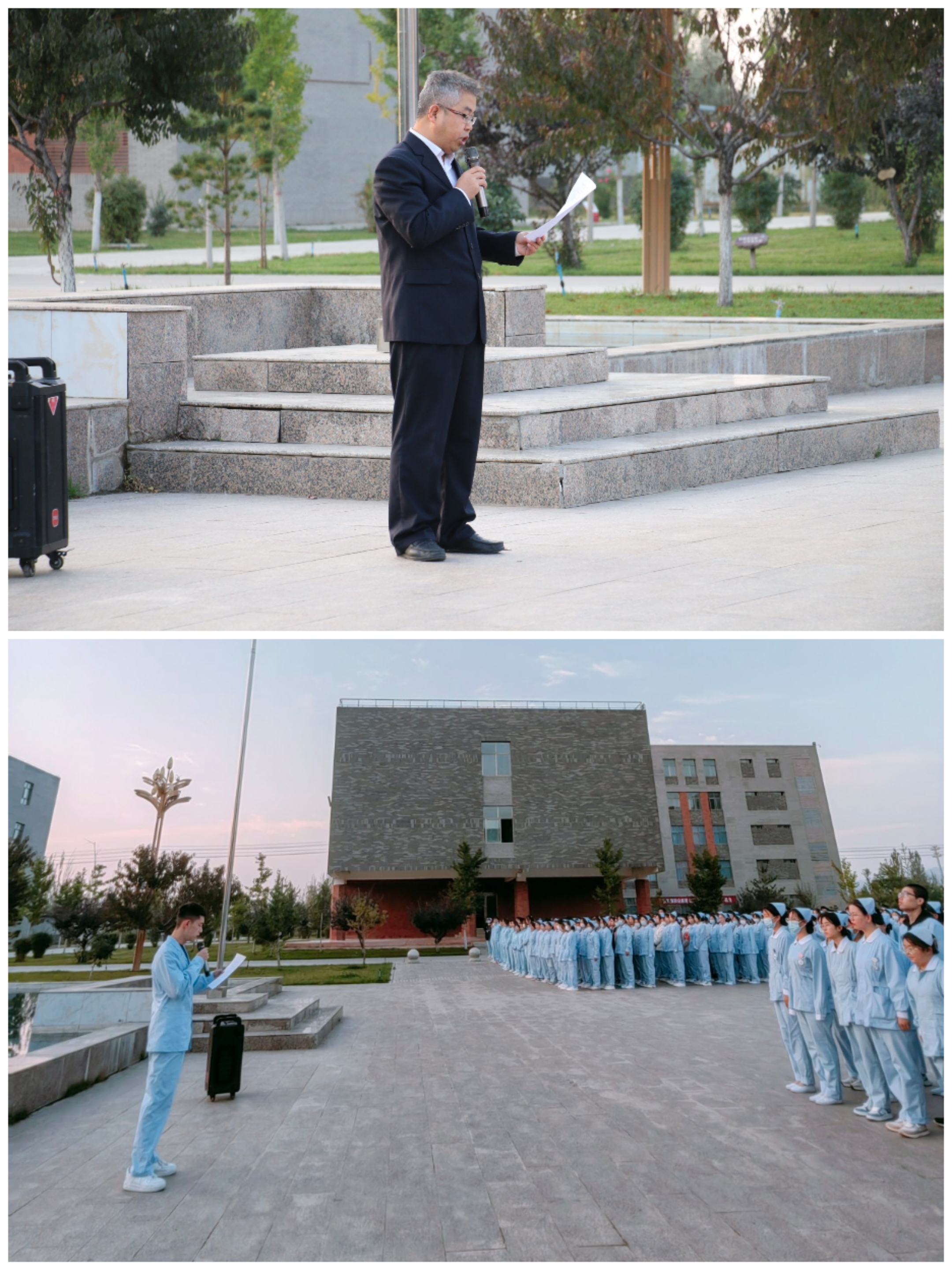10月9日清晨,護(hù)理學(xué)院在圖書(shū)館前廣場(chǎng)舉行升國(guó)旗儀式,學(xué)院黨總支書(shū)記張建輝、團(tuán)委書(shū)記楊杰、全體班主任及2022、2023級(jí)全體學(xué)生參加此次升旗儀式,儀式由楊杰主持。