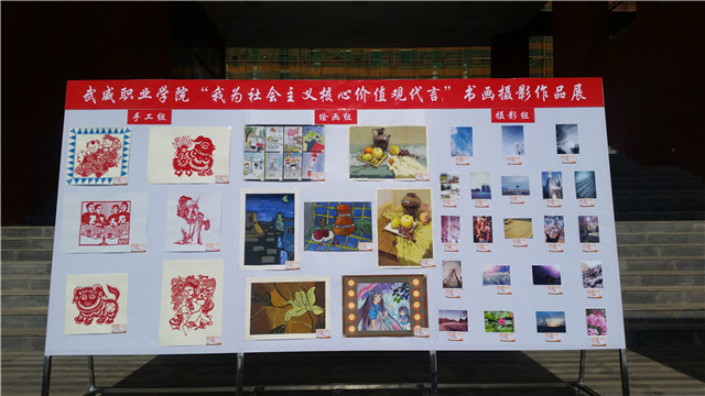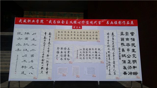 本次大賽自4月啟動以來,共收到來自全院學生的370余件作品,分為軟筆書法、硬筆書法、繪畫、攝影、手工五大類。經過篩選有137件作品進入復賽,作品緊扣社會主義核心價值觀主題,以生動的藝術形象、藝術形式展示社會主義核心價值觀。院團委邀請人文教育藝術系的藍明東、祁小剛、趙向峰、薛媛、蘆曉鵬教師組成評審小組,對參賽作品分組評審,評選出一等獎4名,二等獎7名,三等獎9名,優(yōu)秀獎15名。獲獎作品在學院大學生活動中心、武威職業(yè)學院團青微信公眾平臺同時展出。