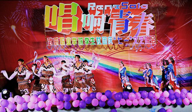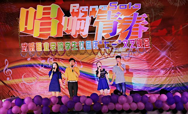 為紀(jì)念建黨95周年,6月22日晚,武威職業(yè)學(xué)院學(xué)生社團在學(xué)院禮堂舉辦了慶“七一”文藝晚會。學(xué)院副院長潘玉華,學(xué)生工作處、招生就業(yè)處、工會、院團委負責(zé)人和800多名師生一同觀看了演出。