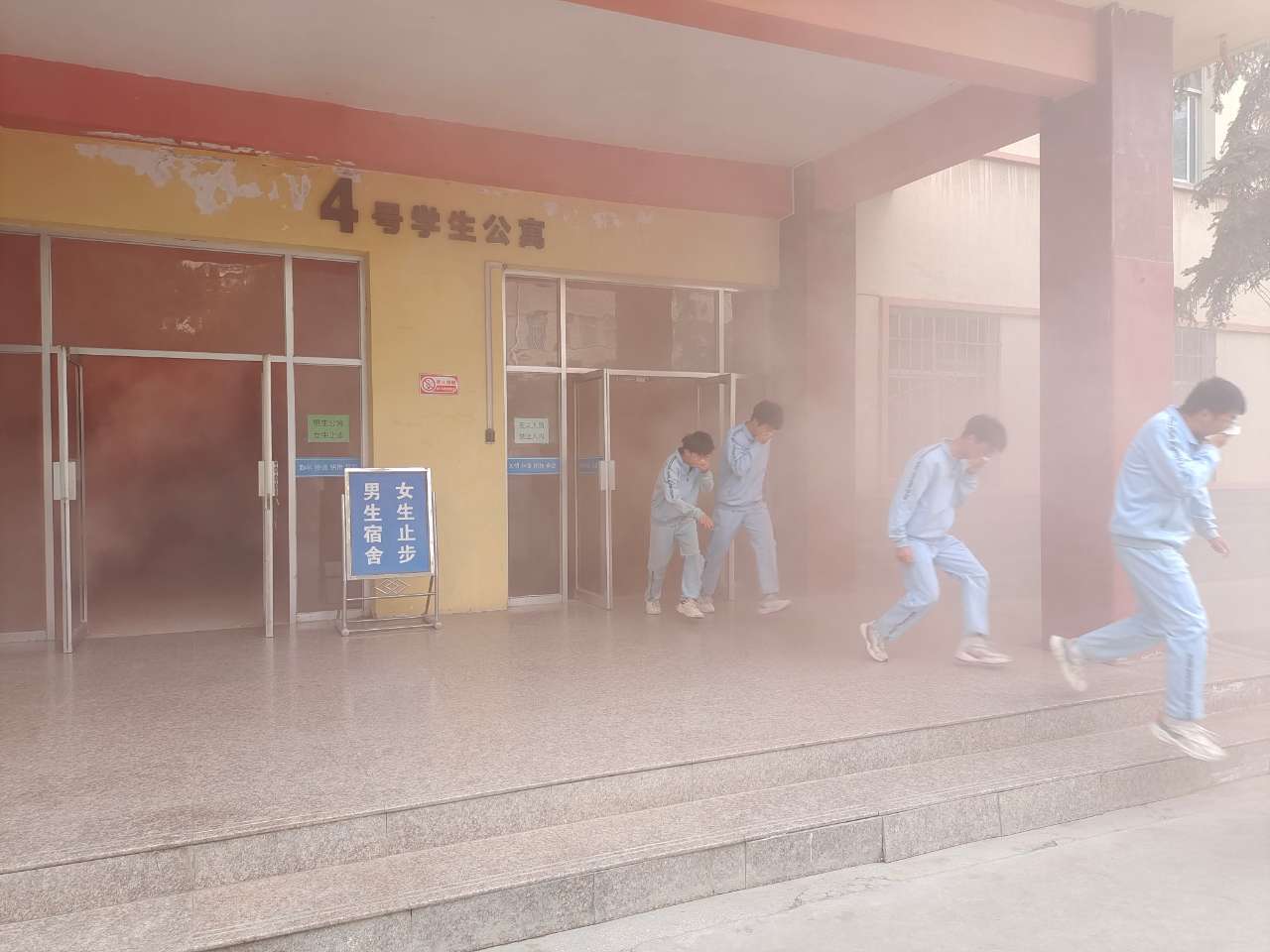14時(shí)40分,疏散演練正式開始。隨著火災(zāi)警報(bào)響起,各學(xué)生公寓樓冒出滾滾濃煙,公寓管理人員迅速組織學(xué)生有序疏散。在軍訓(xùn)教官、學(xué)生管理人員的引導(dǎo)下,同學(xué)們按照動(dòng)作要領(lǐng),用濕毛巾捂住口鼻,俯身彎腰按照安全出口指示牌指引快速、有序從疏散通道撤離到體育場(chǎng),整個(gè)過(guò)程緊張有序、實(shí)用性強(qiáng),收到了預(yù)期效果。
