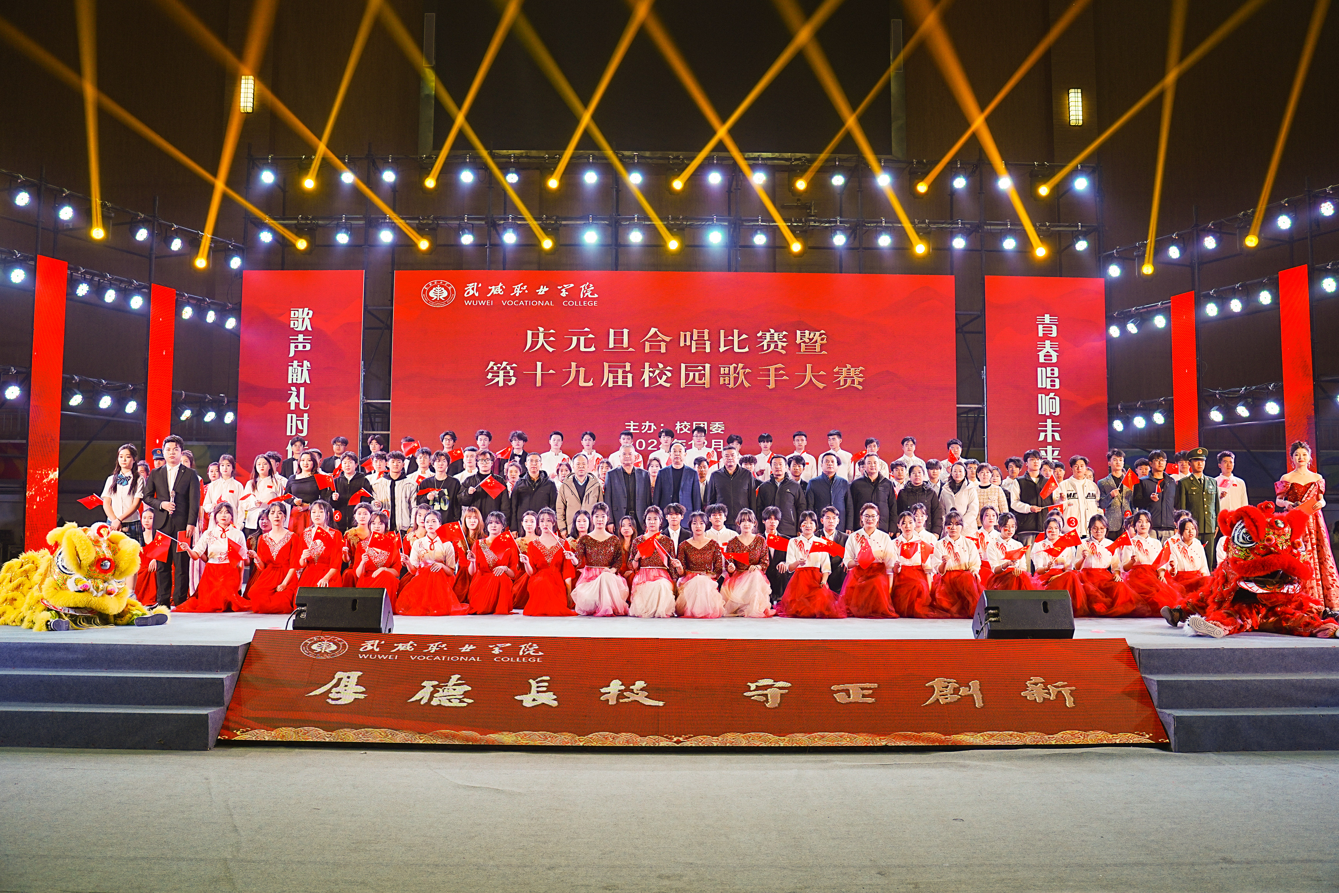 歌聲獻(xiàn)禮時(shí)代,青春唱響未來。12月26日晚,學(xué)?!皯c元旦”合唱比賽暨第十九屆校園歌手大賽在體育館成功舉辦。學(xué)校黨委書記王宏出席活動(dòng)并為獲獎(jiǎng)集體和個(gè)人頒獎(jiǎng),黨委委員、副校長王守云出席活動(dòng),各二級(jí)學(xué)院和相關(guān)部門負(fù)責(zé)人與2000余名師生現(xiàn)場觀看了比賽。