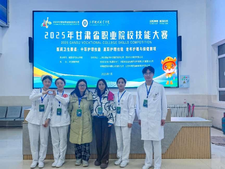 近日,由甘肅省教育廳、人社廳、財政廳等5部門主辦的2025年全省職業(yè)院校技能大賽圓滿閉幕。我院共有5組師生分別參加了臨夏現(xiàn)代職業(yè)學院賽點醫(yī)藥衛(wèi)生賽道中護理技能與老年護理與保健賽項、甘肅農業(yè)職業(yè)技術學院賽點公共管理組健康養(yǎng)老照護賽項。