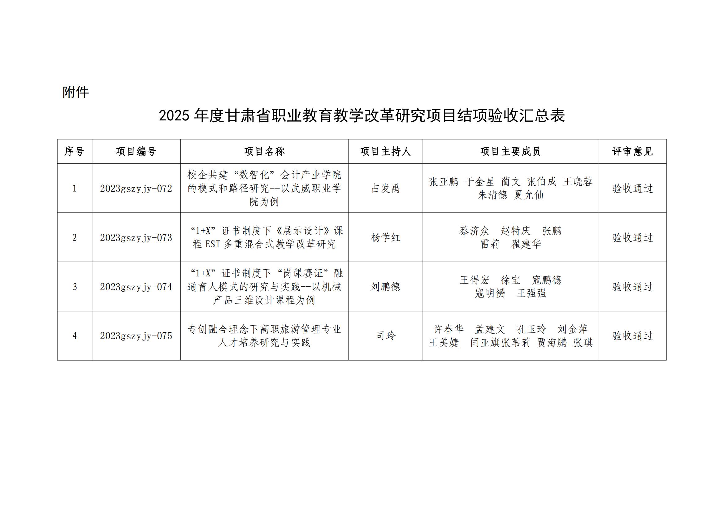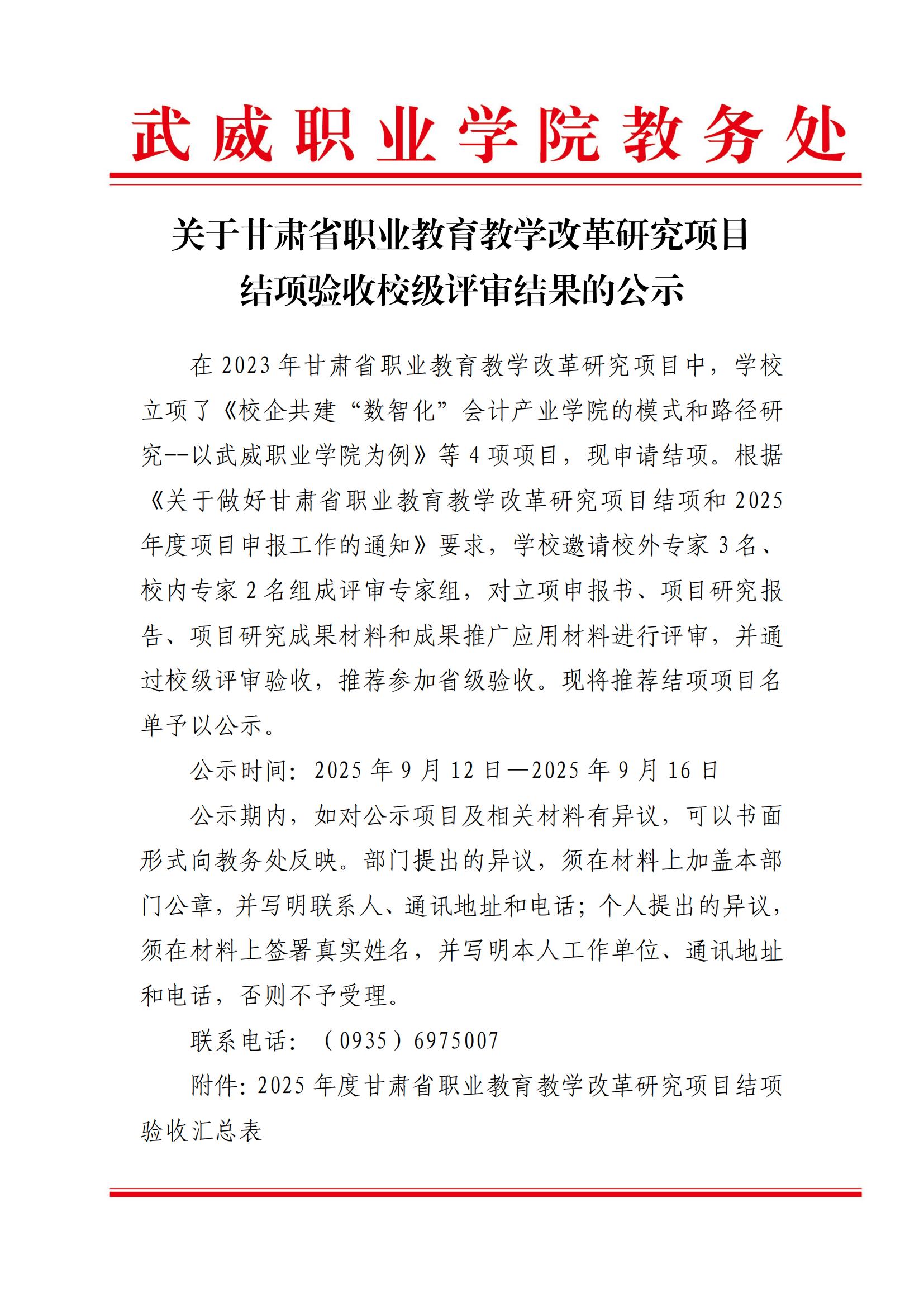 關(guān)于甘肅省職業(yè)教育教學改革研究項目結(jié)項驗收校級評審結(jié)果的公示
