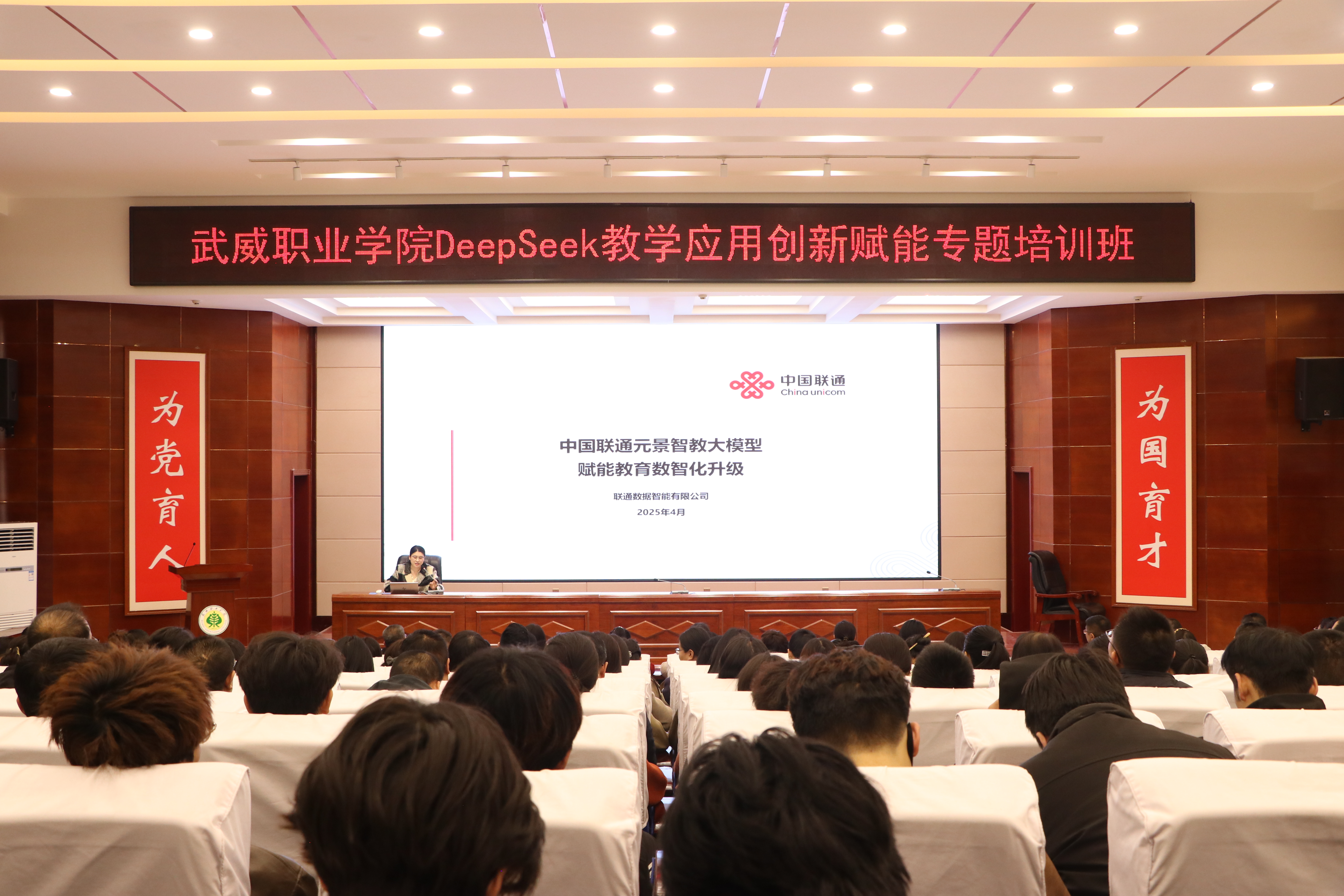 為深入探討DeepSeek技術(shù)的應(yīng)用,助力學(xué)校師生運用AI工具進(jìn)行教學(xué)實踐、智慧課程建設(shè)與科學(xué)研究工作,為教學(xué)改革與教學(xué)創(chuàng)新實踐筑基賦能。4月3日,學(xué)校邀請聯(lián)通數(shù)據(jù)智能有限公司教育行業(yè)解決方案專家包紅梅和華為技術(shù)有限公司智算產(chǎn)業(yè)AI架構(gòu)師王鑫,舉辦了“DeepSeek教學(xué)應(yīng)用創(chuàng)新賦能”專題講座。講座由網(wǎng)絡(luò)安全與信息技術(shù)中心負(fù)責(zé)人史子新主持,學(xué)校各部門、二級學(xué)院教師代表,信息技術(shù)學(xué)院學(xué)生代表共計220人參加。