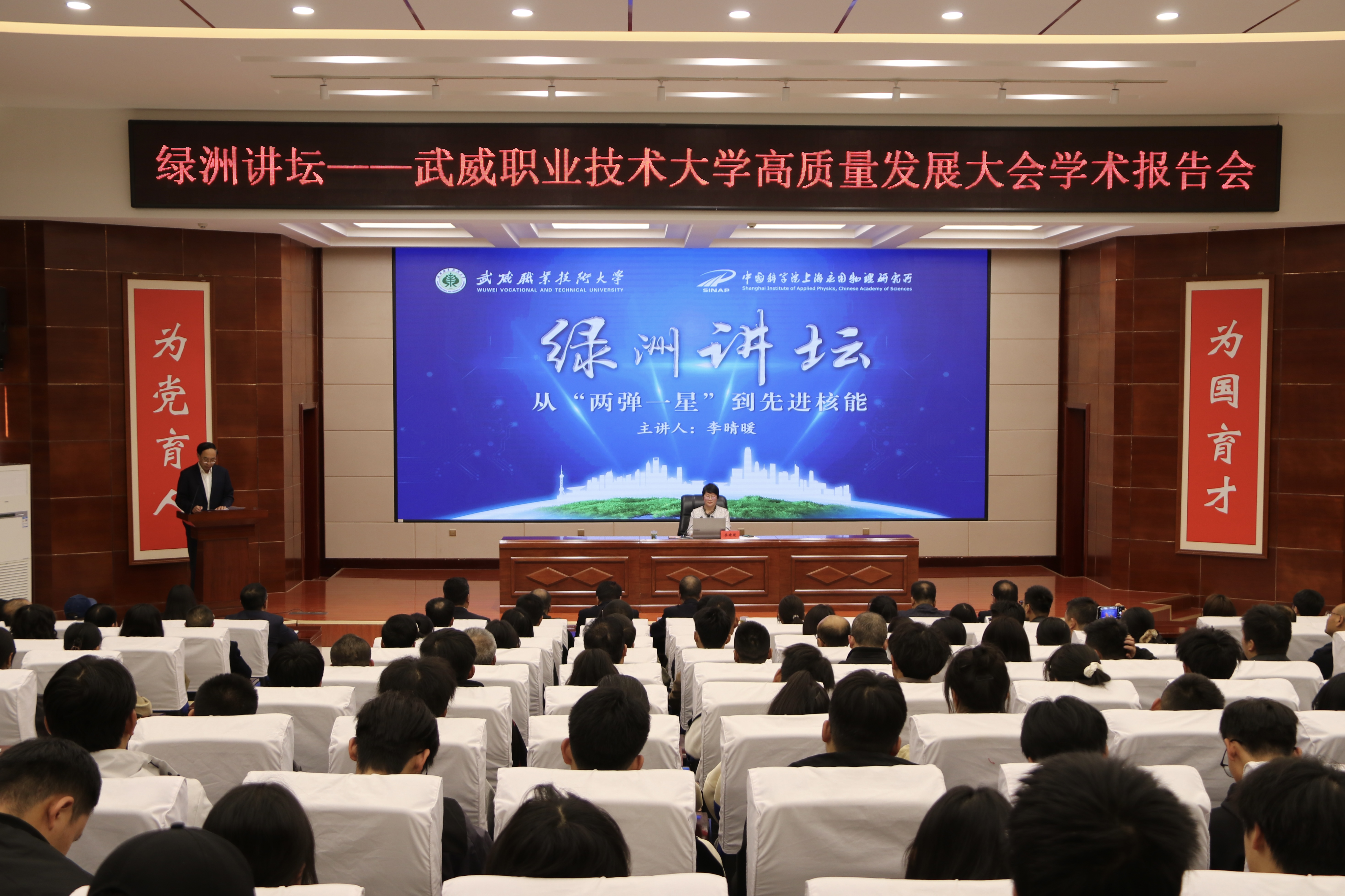 10月12日下午,中國(guó)科學(xué)院上海應(yīng)用物理研究所黨委書(shū)記、副所長(zhǎng)李晴暖研究員,受邀做客武威職業(yè)技術(shù)大學(xué)“綠洲講壇”,以《從“兩彈一星”到先進(jìn)核能》為題,為該校220余名師生代表帶來(lái)專題學(xué)術(shù)報(bào)告。