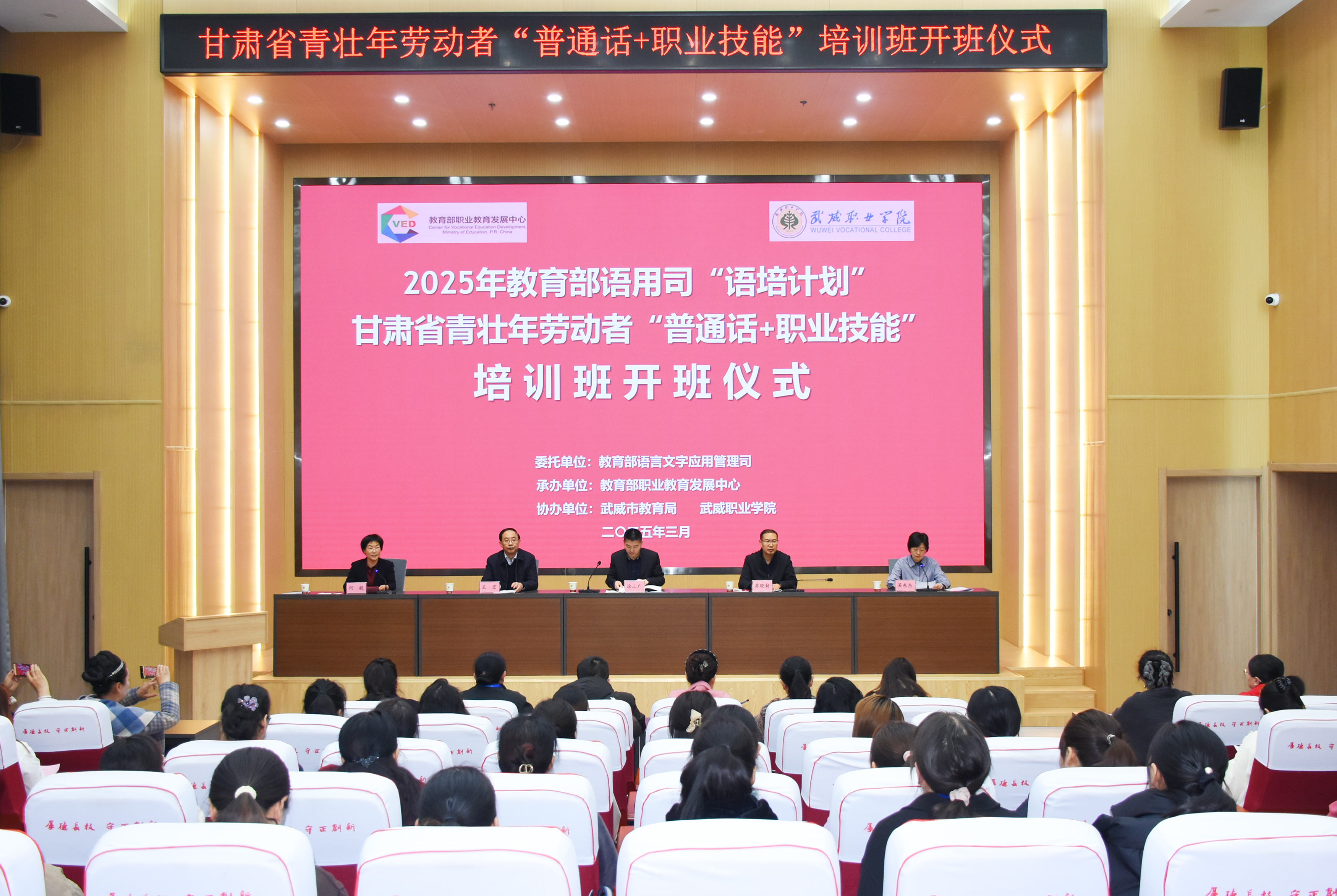 3月25日,教育部語用司“語培計劃”甘肅省青壯年勞動者“普通話+職業(yè)技能”培訓班在學校成功開班。本次培訓由教育部語用司主辦,教育部職業(yè)教育發(fā)展中心承辦,武威市教育局和學校協(xié)辦。本次培訓是深入貫徹落實黨的二十大和二十屆二中、三中全會精神,落實全國教育大會精神,實施《教育強國建設(shè)規(guī)劃綱要(2024-2035年)》的重要舉措,旨在進一步推廣國家通用語言文字的應用,促進鑄牢中華民族共同體意識。