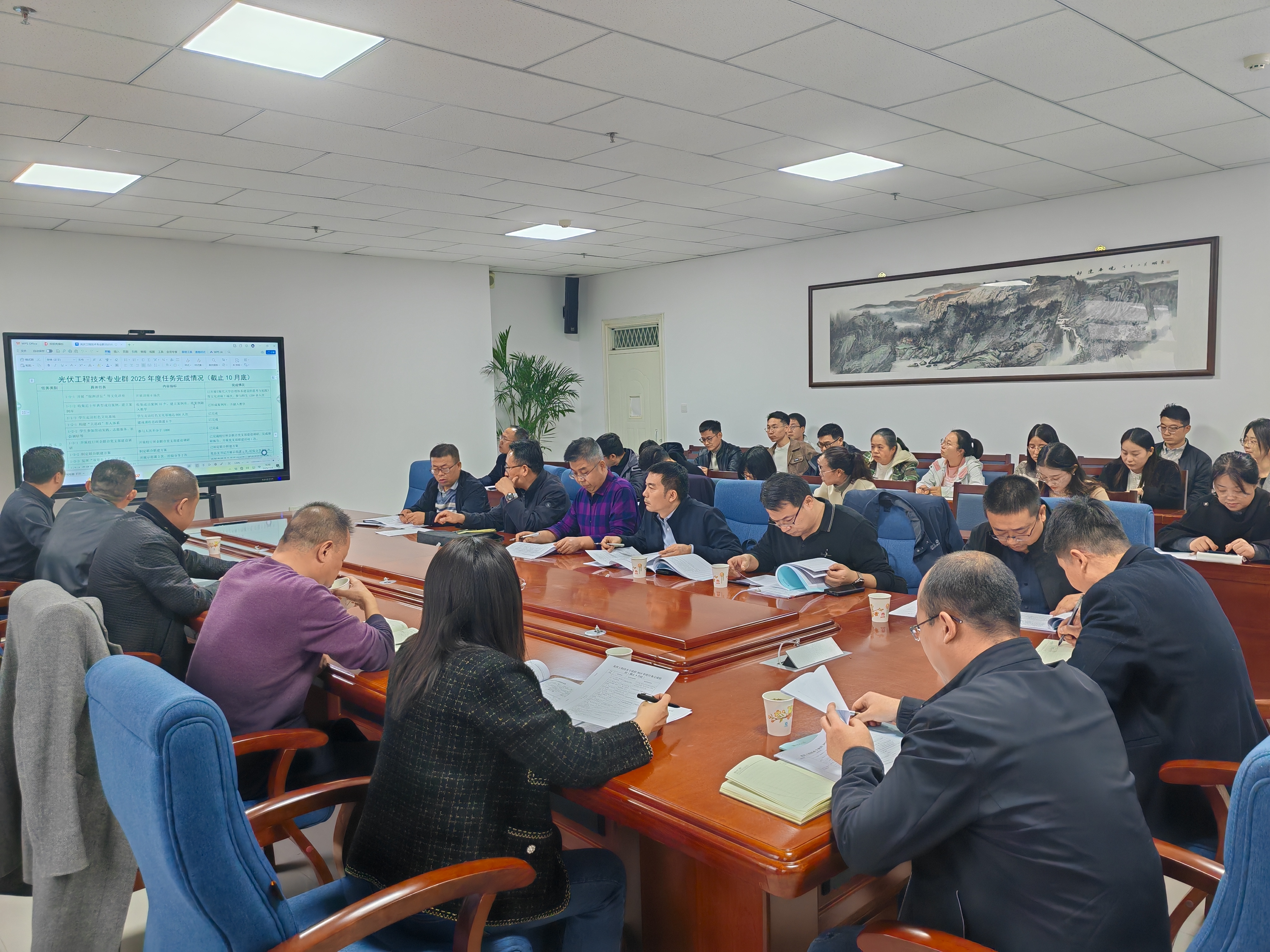 核與輻射檢測防護(hù)技術(shù)專業(yè)群和光伏工程技術(shù)專業(yè)群負(fù)責(zé)人分別匯報了專業(yè)群2025年建設(shè)任務(wù)完成情況、存在的問題及下一步措施。參會部門分別匯報了工作推進(jìn)情況、進(jìn)一步支持專業(yè)群建設(shè)舉措等。