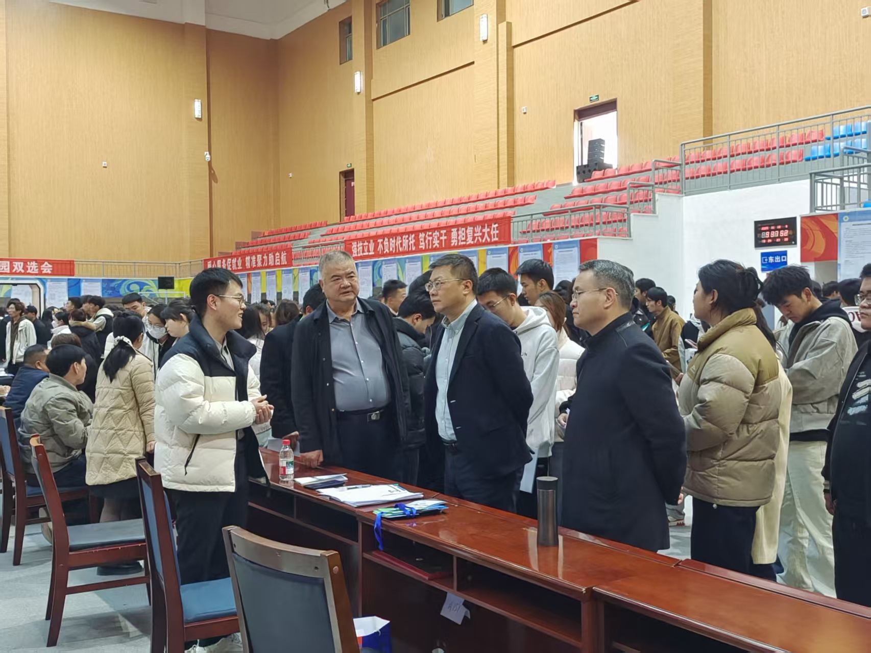 11月13日,校園招聘雙選會(huì)在學(xué)校體育館隆重舉行。校長(zhǎng)李海軍、副校長(zhǎng)王守云、伍國(guó)強(qiáng)親臨現(xiàn)場(chǎng)指導(dǎo)工作。李海軍詳細(xì)了解本屆畢業(yè)生的招聘需求與市場(chǎng)動(dòng)向,走訪多家用人單位展位并聽(tīng)取企業(yè)對(duì)學(xué)校人才培養(yǎng)的寶貴意見(jiàn)。同時(shí),與應(yīng)聘學(xué)生進(jìn)行親切交流,勉勵(lì)畢業(yè)生們要樹(shù)立正確的擇業(yè)觀,立足本職,服務(wù)社會(huì),將個(gè)人成長(zhǎng)融入國(guó)家發(fā)展大局。