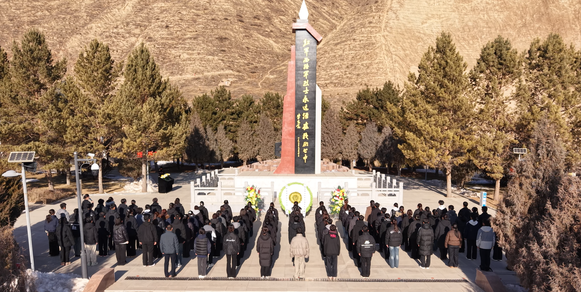 活動(dòng)伊始,在莊嚴(yán)肅穆的烈士紀(jì)念碑前,全體人員列隊(duì)肅立,懷著無(wú)比崇敬的心情,深切緬懷在革命戰(zhàn)爭(zhēng)中英勇獻(xiàn)身的烈士。紀(jì)念館講解員深情講述了紅西路軍征戰(zhàn)河西、浴血古浪的悲壯歷程和崇高精神,將大家?guī)Щ氐侥嵌畏榛疬B天、艱苦卓絕的歲月,深刻感悟革命先輩堅(jiān)定不移的理想信念、視死如歸的英雄氣概和與人民群眾的血肉聯(lián)系。教師代表向烈士紀(jì)念碑敬獻(xiàn)花籃,并仔細(xì)整理緞帶,表達(dá)無(wú)限哀思與崇高敬意。全體人員手持象征純潔與追思的白菊,緩步繞行烈士墓區(qū),逐一瞻仰,鞠躬致意,寄托對(duì)革命先烈的深切緬懷。