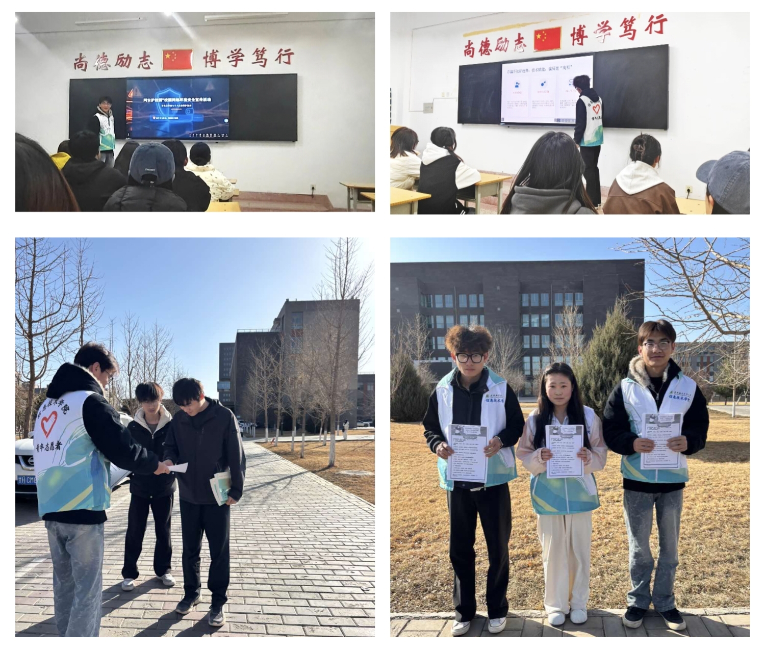 志愿者們還圍繞防電信詐騙、個人信息保護等核心內(nèi)容,向同學們普及了保護賬號密碼、謹慎點擊不明鏈接、不隨意泄露個人隱私等實用防護技巧,并在教學樓等人流密集區(qū)域分發(fā)防詐騙宣傳傳單,用圖文并茂的內(nèi)容和通俗易懂的提示,引導大家樹立 “網(wǎng)絡安全,人人有責” 的意識,自覺抵制網(wǎng)絡謠言與不良信息,筑牢校園網(wǎng)絡安全防線。