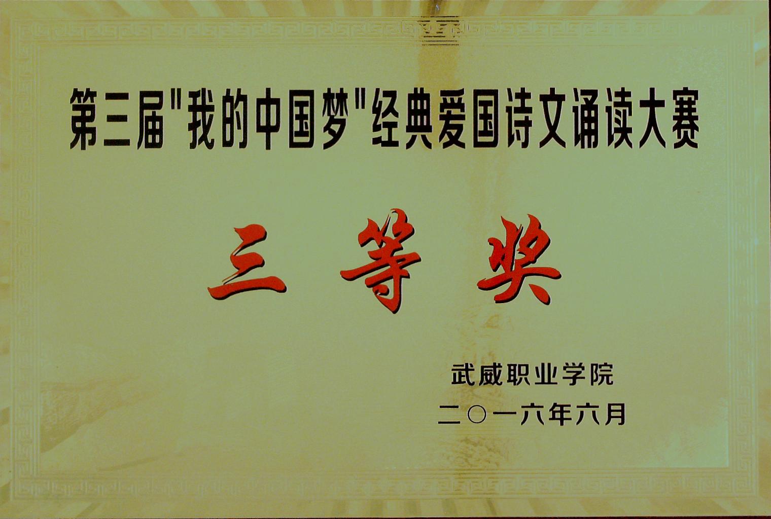 第三屆“我的中國(guó)夢(mèng)”經(jīng)典愛國(guó)詩文誦讀大賽三等獎(jiǎng)