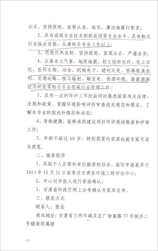 現(xiàn)將《甘肅省環(huán)境工程評(píng)估中心關(guān)于推薦建設(shè)項(xiàng)目環(huán)境影響評(píng)價(jià)審查專家的通知》(甘環(huán)評(píng)估發(fā)〔2013〕28號(hào))予以轉(zhuǎn)發(fā),請(qǐng)符合條件的人員積極報(bào)名。