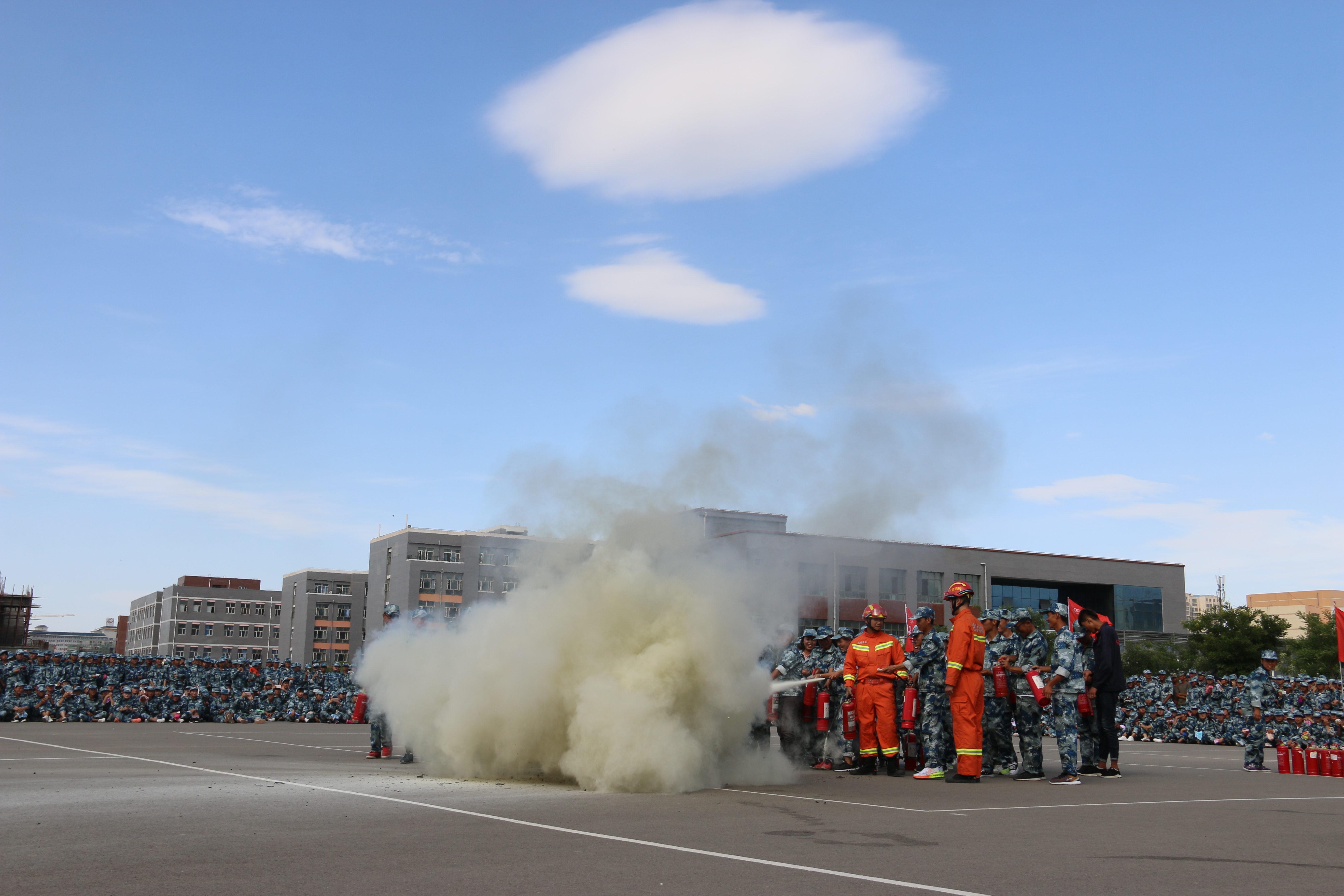 隨后,所有參演學(xué)生整隊到操場參加了滅火演練。在消防官兵的講解和和示范下,同學(xué)們體驗了處置著火液化氣瓶、干粉滅火器滅火,通過模型煙室等操作?! ?/p>