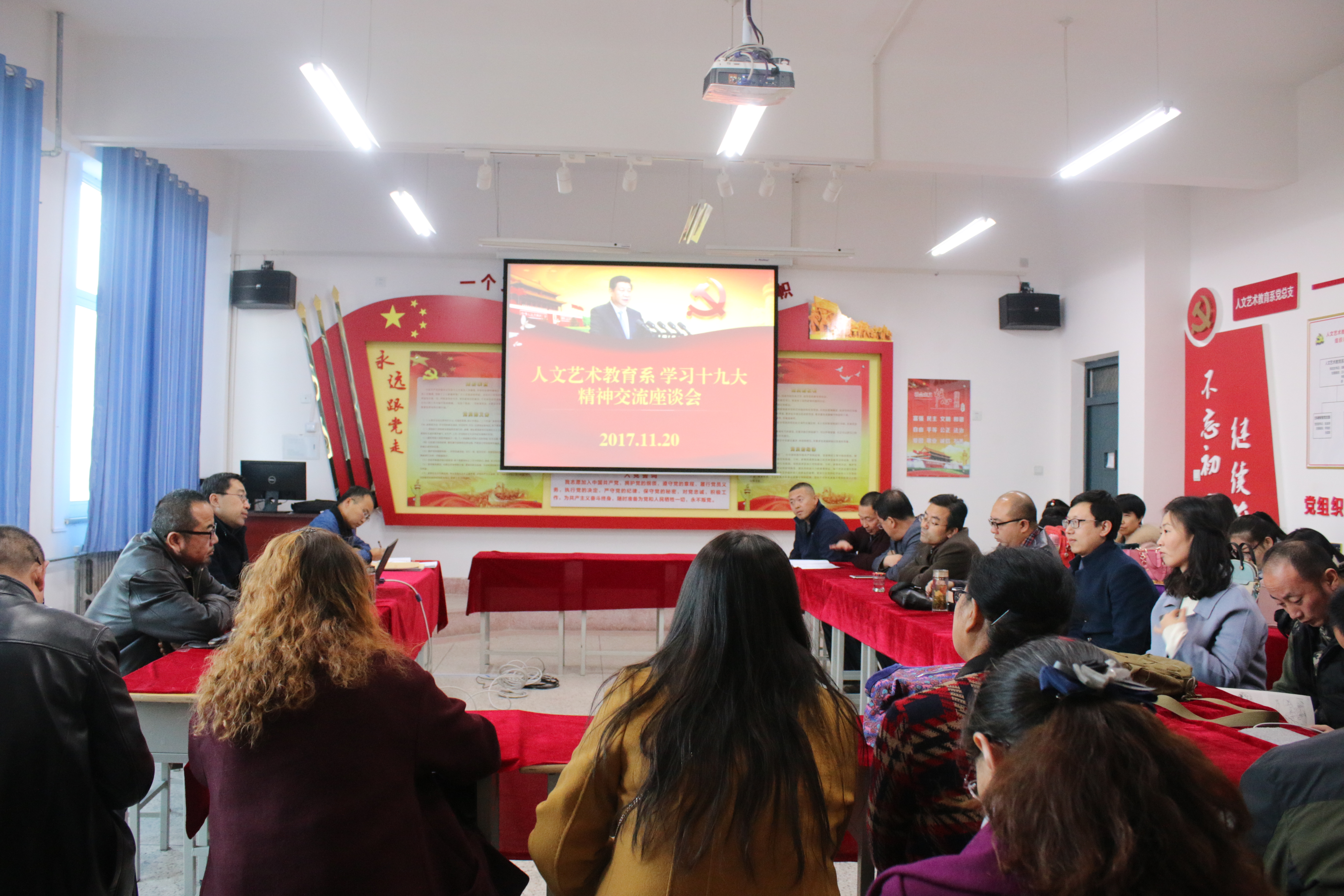 11 月20日,人文藝術(shù)教育系黨總支召開了“學(xué)習(xí)黨的十九大精神 促進我系教育發(fā)展”專題座談會。會議由人文藝術(shù)教育系黨總支書記胡靜峰同志主持,系全體教師參加座談會。